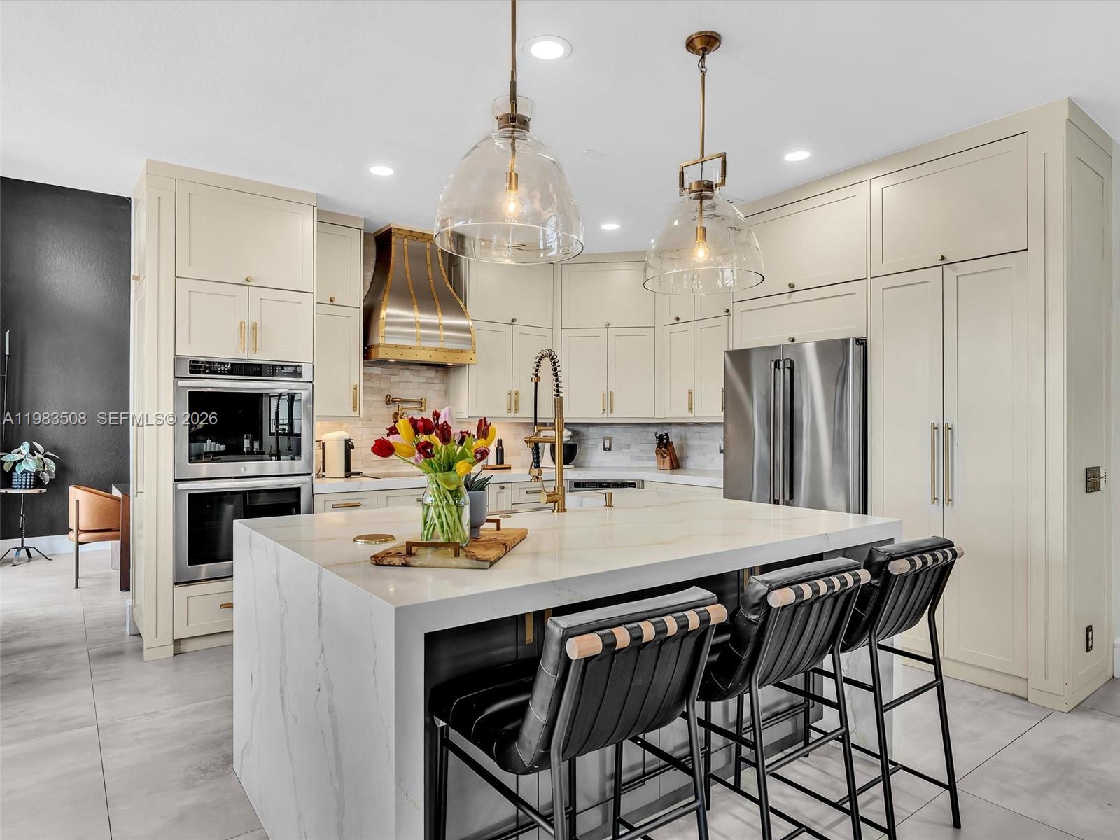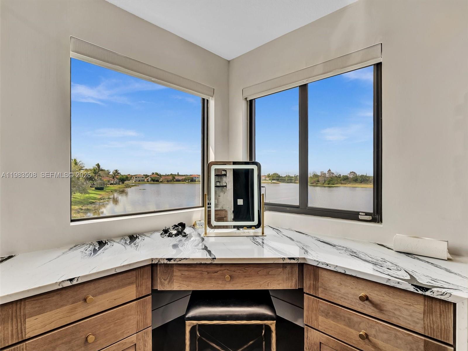 Fully renovated waterfront residence nestled on a quiet cul-de-sac in the gated community of North Lakes. Offering 3,031 SF of living space on the largest lot currently available in the neighborhood, a rare 13,000± SF waterfront lot with privacy and unobstructed lake views, ideally positioned for abundant natural light and beautiful sunsets all year long. A dramatic 10FT impact front door opens to stunning sightlines through the home to the pool and lake. The interior showcases Italian porcelain flooring, solid oak stairs and wall panels, designer finishes, and full impact windows & doors throughout. The chef’s kitchen features top-tier appliances, quartzite countertops, a quartz island, solid brass fixtures with pot filler, handmade Zellige tile backsplash, and an LED-lit bar. The primary suite on the 2nd level offers a spacious sitting area with serene lake views. The outdoor living experience is nothing short of extraordinary. Designed as a private waterfront sanctuary, the heated saltwater pool and spa feature a spacious sun shelf with in-water loungers, LED lighting, and elegant water features. The expansive patio provides multiple lounge areas complemented by a gazebo and a private mini golf putting green, offering complete privacy and uninterrupted water views rarely found. A rare opportunity to own the largest waterfront lot available in North Lakes, combining modern design, privacy, and elevated outdoor living.