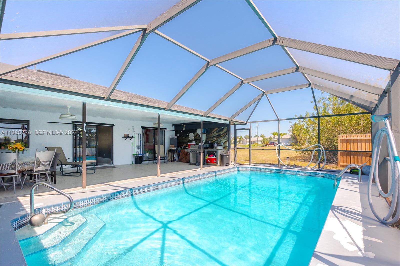 Spectacular Property in Cape Coral. DIRECT ACCESS TO A WIDE, OPEN, AND NAVIGABLE CANAL. The view is open and unobstructed toward the canal, creating a sense of spaciousness, tranquility, and constant connection with the water environment. From the home, you enjoy a panoramic view of the canal. The canal is wide, allowing for comfortable and recreational boating, reinforcing the waterfront lifestyle. The presence of the water just steps away from the pool makes the outdoor area an ideal space for relaxation, entertainment, and outdoor living. The property includes a SCREENED-IN POOL, spacious and functional, within a covered lanai that allows year-round outdoor enjoyment with shade and protection. The pool and lanai area are directly integrated with the canal views. The home is a single-story residence with 3 bedrooms and 2 bathrooms, featuring visual connection to the outdoor area and the canal. 2,354 sqft