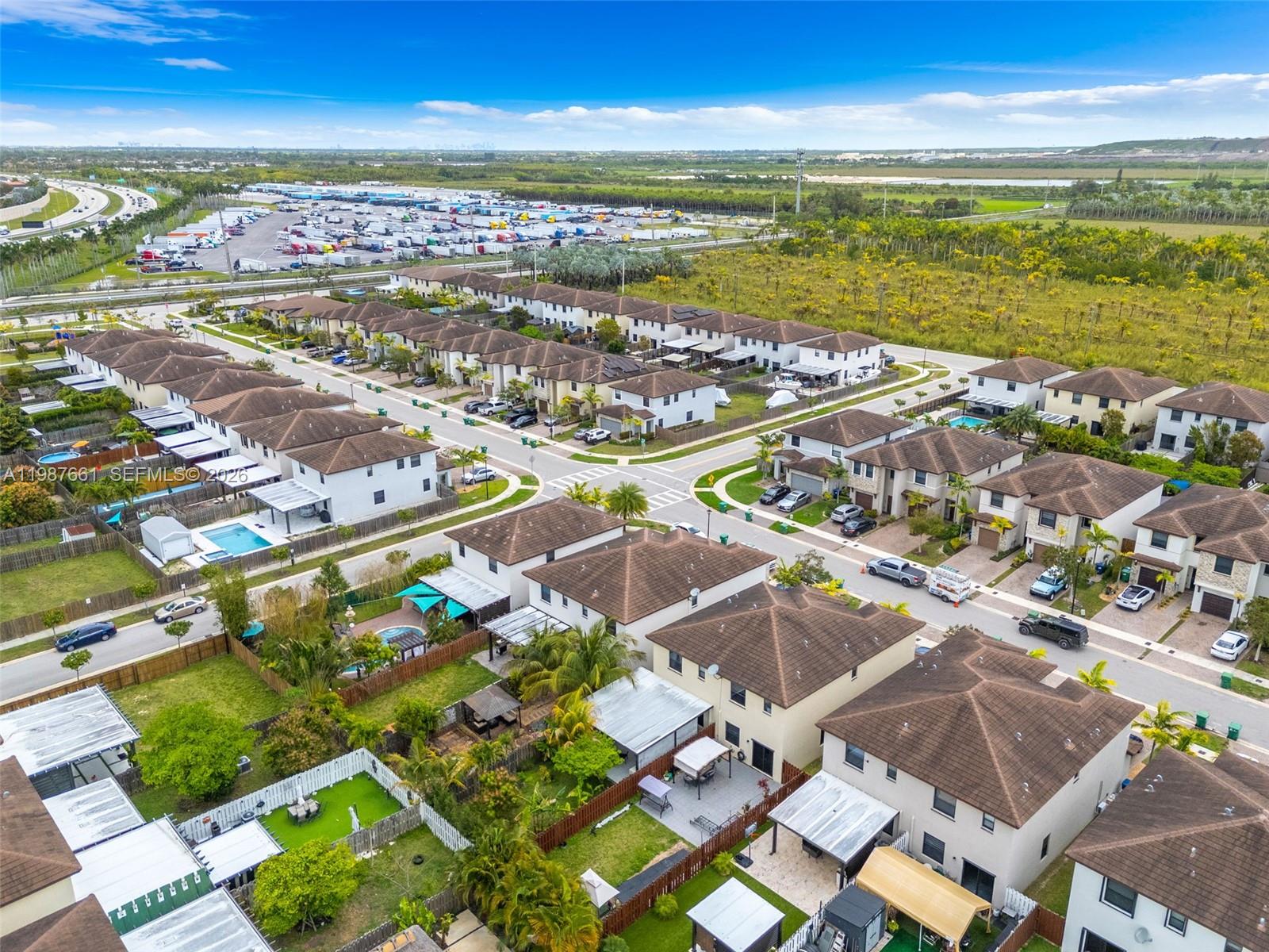 This meticulously upgraded twinhome in one of Homestead's sought-after communities, where modern design, outdoor living, and location come together in one extraordinary package. Step through the foyer into a sunlit open floor plan where oversized ceramic tile flows beneath designer lighting, and a stunning kitchen commands attention. Granite countertops, a hand-laid chenille stone backsplash, and refrigerators with water filtration systems and stainless steel appliances complete the look. A half-bath completes the main floor perfectly. Upstairs, the master retreat delivers everything you need: a walk-in closet, a ceiling fan, and a spa-inspired ensuite with dual sinks and a glass door shower. A hallway bathroom serves the additional two bedrooms. A dedicated laundry room upstairs. The backyard opens up — and nothing compares. Fully fenced and sprawling across a 3,550 sq ft lot, this is the outdoor space buyers search for and rarely find. A 25x25 ft pergola with ceiling fans and roll-down shades, a full quartzite outdoor kitchen, refrigerator, and a lush private yard flourishing with Mango, Avocado, Mamey, Lemon, Coconut, and Plantain trees. This is not just a backyard; this is your own private resort. Extras. new vanity. Plantation shutters. Resort-style community amenities include a clubhouse, security patrol, Olympic pool, gym, playground, and walking trail — all with low HOA fees. Minutes from the Turnpike, US-1, Publix, Black Point Marina, WAWA, Chick-fil-A, and ALDI.