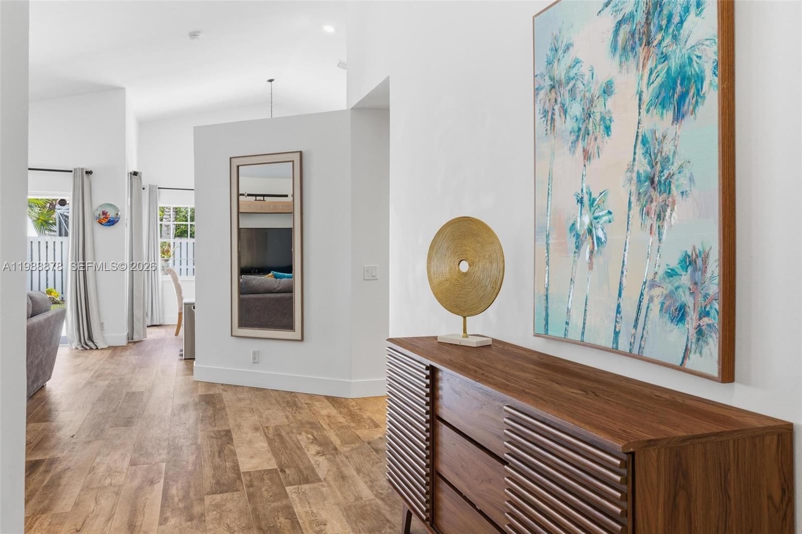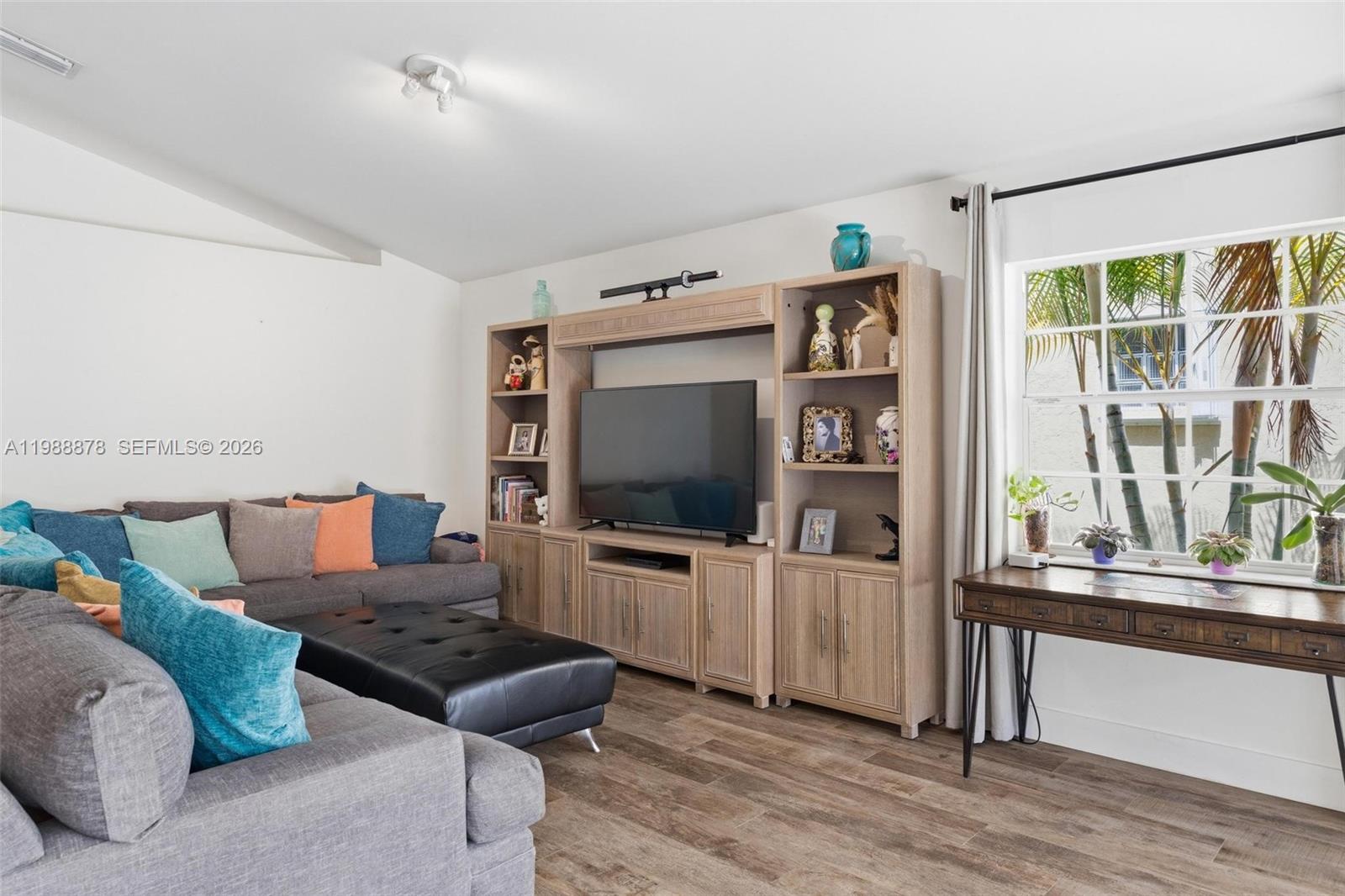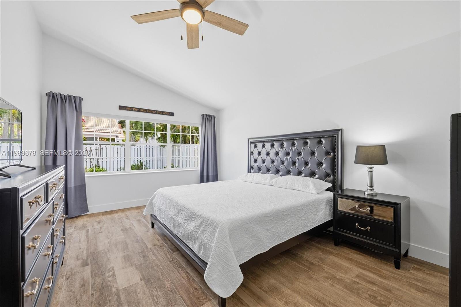 Impeccably maintained 3BR/2BA home located in the gated community of Hibiscus Island featuring vaulted ceilings and multiple major upgrades, including solar panel system (2022) providing significantly reduced electric bills, GE electrical panel (2022), Rheem A/C (2022), hybrid Rheem Performance Platinum water heater (2022), and dryer (2022). Roof replaced in 2016 provides a peace of mind for years to come. Interior offers a remodeled kitchen with quartz countertops and 42” white wood cabinetry, along with a beautiful wood-look porcelain tile flooring throughout the entire home and 5" modern baseboards. All closets have been professionally built out, providing ample and organized storage. Home is equipped with hurricane shutters on all windows and doors for added protection and insurance benefits. Exterior includes a spacious backyard with plenty of room to add a pool, ideal for outdoor entertaining or future value enhancement. Located in a boutique gated community with excellent privacy, community pool and playground, within walking distance to Tequesta Trace Middle School and Indian Trace Elementary School. Property shows exceptionally well, is move-in ready, and easy to show.