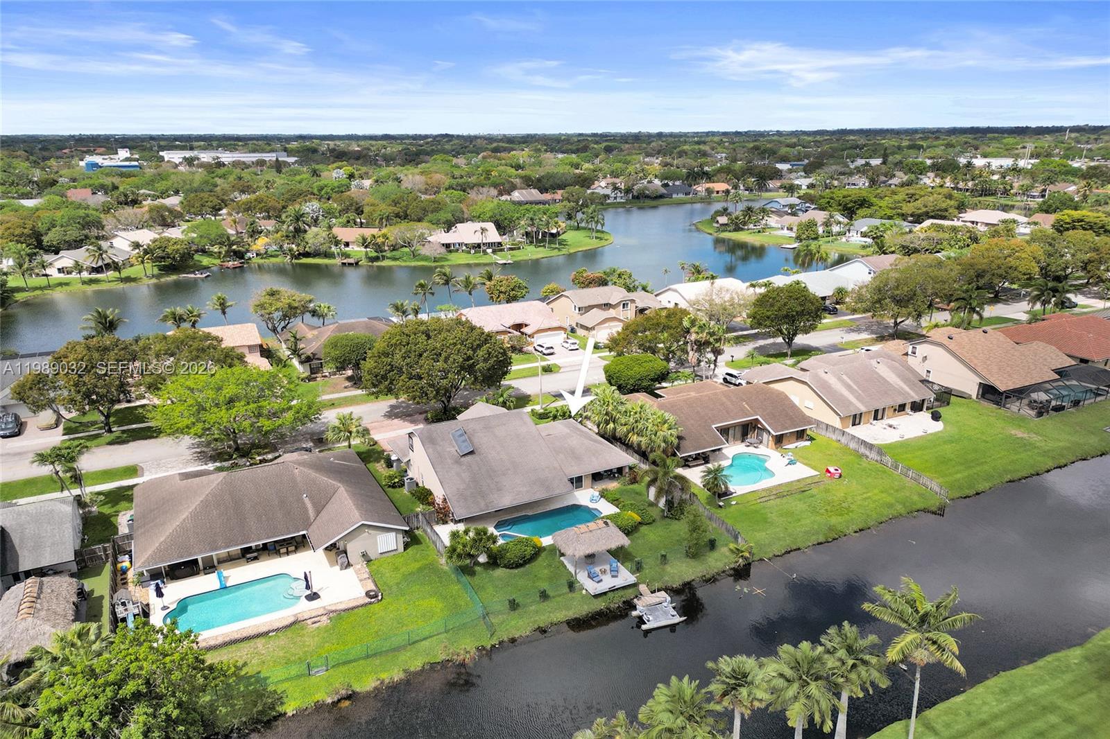 Welcome home to this Beautiful 4BR/3BA waterfront, pool home featuring a spacious 3-way split bedroom layout and full hurricane impact glass & doors throughout for safety and peace of mind. Sleek laminate flooring in all rooms. The primary suite has tray ceilings and sliding doors to the backyard, creating a bright, open retreat. The primary bath features double sinks, a sunken tub, and a separate shower. Bathrooms are upgraded with marble flooring, granite counters, and glass-enclosed showers. Enjoy stunning water views from nearly every room, overlooking the canal and heated pool area—perfect for true indoor-outdoor living. This well-designed home offers vaulted ceilings, a formal living/dining area & a large family room that opens to an updated kitchen with granite countertops, wood cabinetry, stainless steel appliances and eat-in breakfast area. Step outside to your private oasis featuring a heated pool with a jacuzzi, and a newly added tiki hut retreat overlooking the water with a small dock for boating—ideal for relaxing or entertaining. Additional highlights include a 2-car garage, separate laundry room, backyard storage shed, sprinkler system, huge yard. Located in one of Cooper City’s most desirable neighborhoods with A-rated schools and NO HOA. Just minutes to major highways, shopping, dining, Hospital and approximately 15 minutes to Fort Lauderdale Airport, Hollywood Beach & Broadwalk, and only 5 minutes to the Hard Rock Resort Hotel & Casino