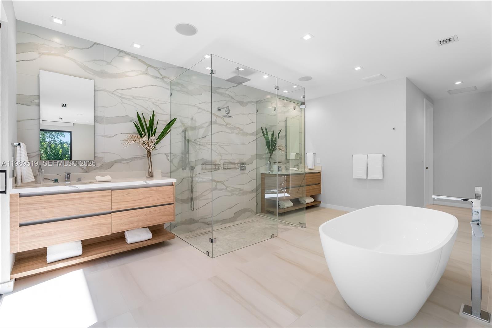 This stunning 2023 home blends modern design with exceptional craftsmanship. Offering 4,866 SF of living space (6,375 SF total) on a 13,500 SF lot, it features 6 beds & 7 baths, meticulously finished with custom details such as trimless lighting & AC ducts and a cozy living room fireplace. A grand double-height entrance with a pivot door leads to a bright, open floor plan. The master suite, on the ground floor, includes a luxurious bathroom with his- and-hers vanities, a freestanding tub, generous walk-in closets, and a private balcony. Additional features include porcelain floors, laundry room. The lush, private garden features a heated pool, covered terrace, and a fully- equipped summer kitchen. Ideally located in South Miami close to Miami’s best private schools & business centers.