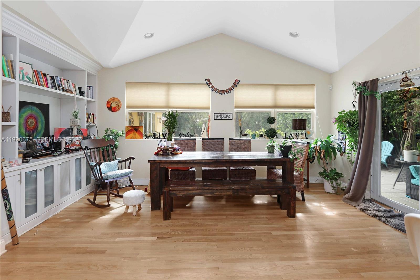 Welcome to this amazing 3-bedroom, 2-bath POOL home with a versatile den/office and a 1-car garage. The spacious primary suite is an add on addition, boasting a fabulous closet and generous layout. Enjoy soaring vaulted ceilings throughout the living, family, and dining areas, with double doors that open to a covered patio and sparkling pool—perfect for indoor-outdoor living. Step outside to your oversized tiki hut, ideal for entertaining, all within a fully fenced backyard. This home blends comfort, charm, and Florida-style fun! *A/C is 2020*