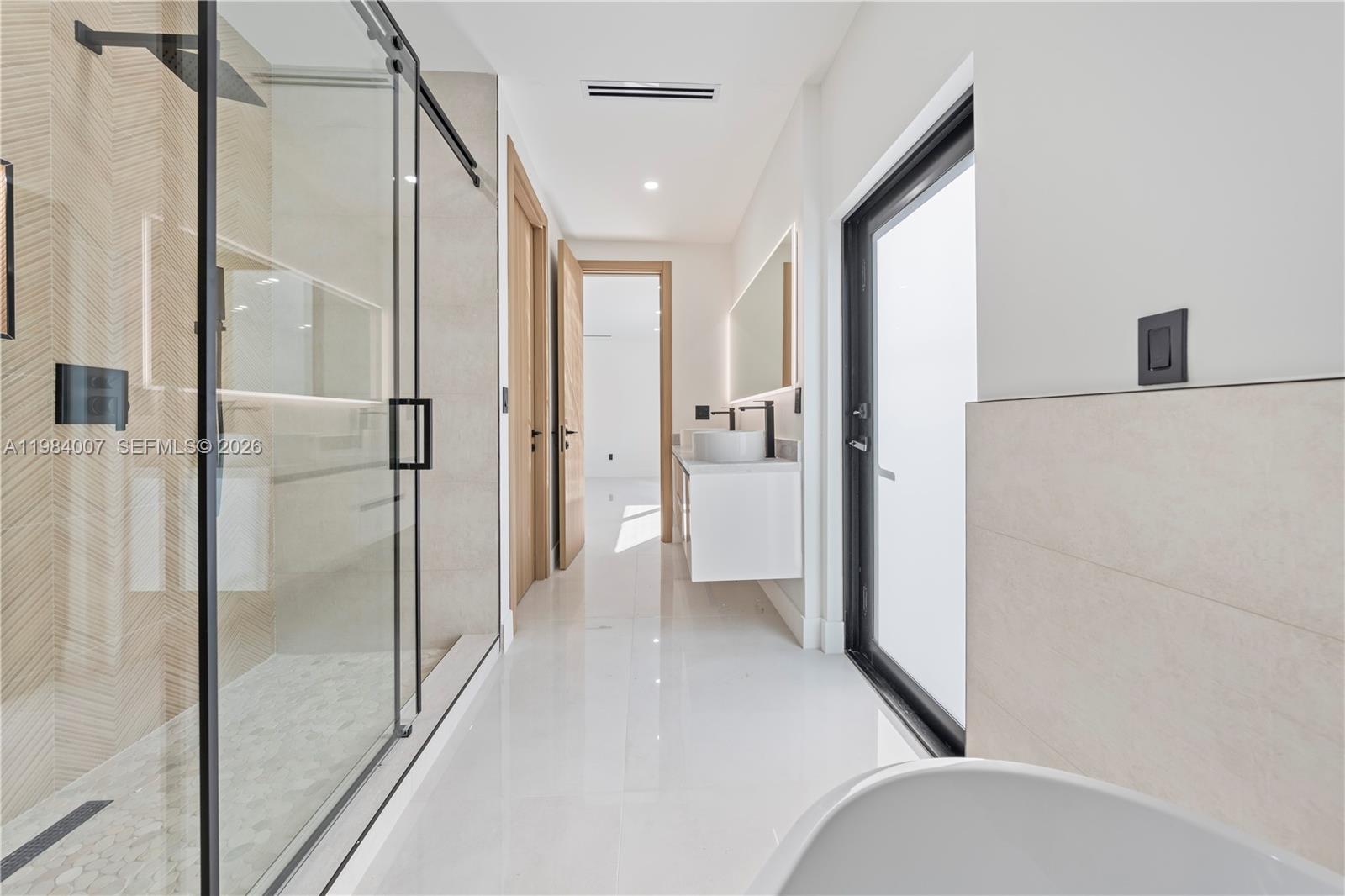 NEW CONSTRUCTION & MODERN LUXURY RESIDENCE. Exquisite brand-new construction sitting on 0.4 acres lot, offering refined modern architecture and an elegant open-concept design. The main residence features 3 bedrooms and 3 bathrooms, complemented by a fully independent guest house with 1 bedroom, 1 bathroom, and a living area ideal for hosting family and guests with complete privacy. The home showcases a sleek Italian kitchen, high-end appliances, impact windows, and premium finishes throughout, blending sophistication with everyday functionality. Natural light flows seamlessly across the interiors, enhancing the contemporary design. The outdoor space serves as a private retreat with a beautifully designed swimming pool and an inviting setting perfect for relaxation and entertaining. Just steps from Biscayne Park, this residence offers a highly desirable setting near one of the area’s most established and charming neighborhoods. A rare opportunity to own a luxury new construction where architectural detail, comfort, and elevated lifestyle come together flawlessly.