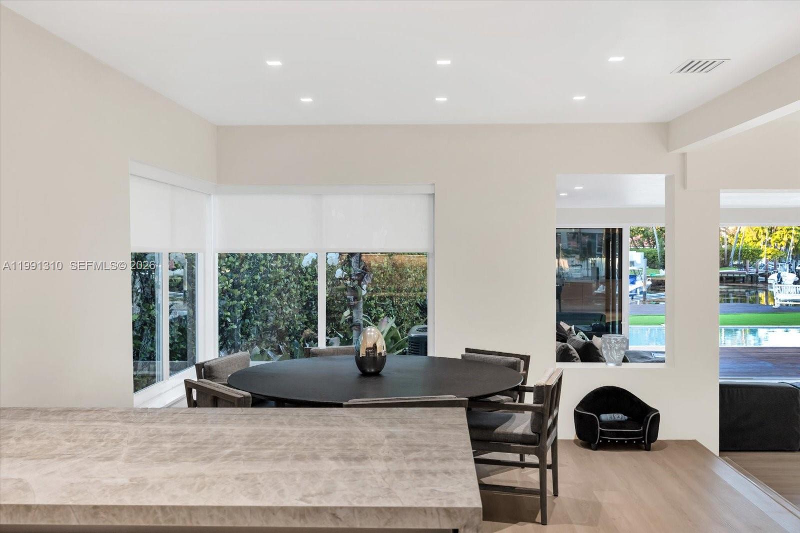 Waterfront retreat on secluded Biscaya Island in Surfside! This beautifully newly renovated residence, designed by renowned architect Gilbert Fein, offers prime waterfront with unobstructed access to the Intracoastal and open ocean—no fixed bridges. A rare opportunity for true boaters seeking both privacy and convenience. Designed for effortless indoor-outdoor living, the home features expansive open spaces filled with natural light, a sleek modern kitchen, and multiple living areas ideal for entertaining. Set within a very private and secure double-gated enclave, the home offers an unparalleled sense of exclusivity and peace of mind. The backyard is a private oasis, complete with a resort-style pool, oversized wood deck, lush landscaping, and tranquil water views. Dock your boat just steps from your home and enjoy the ultimate South Florida lifestyle. Minutes from Bal Harbour Shops, the beach, and world-class dining, this is one of the most unique waterfront offerings in the area.