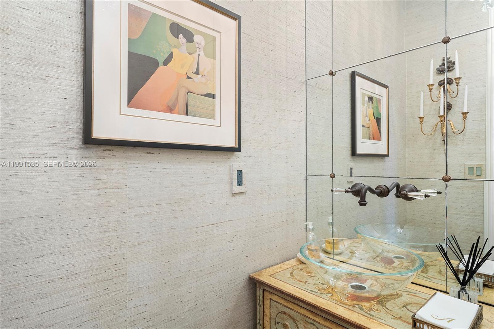 A refined and elegant designer-owned residence located in South Coral Gables. This beautifully appointed home offers 3953 sq ft of impeccably curated interiors under air on a 10,000 sq ft lushly landscaped lot. Features include, formal living room with fireplace, formal dining room, 3 bedrooms, 4 full bathrooms and 1 half bath, plus a private office, and dedicated gym. Spacious primary suite on the first floor with dual bathrooms. Open concept kitchen with breakfast nook flowing seamlessly into a comfortable gathering room, ideal for everyday living and entertaining, that opens to a pergola-covered patio perfect for a al fresco dining. The second story opens to a comfortable living area with lots of natural light, a perfect space for relaxation leading to the 2 bedrooms with ensuite baths.