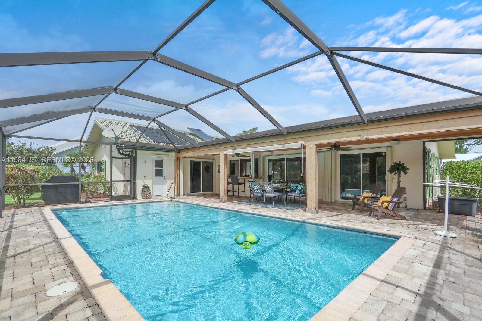 Full Florida living as this home is situated so close to Parks and allows the ability to Bike to the Waterfront. Live the Stuart Lifestyle- Voted Best Small Beachtown! Beautifully maintained lakeview pool home in the sought-after Yacht & Country Club of Stuart. This single story 3 bedroom, 2.5 bath, CBS home offers a highly desirable split floor plan featuring two spacious owner’s suites each with private en-suite baths and walk-in closets, all perfect for hosting guests or multigenerational living. Both suites open directly to the pool and include private en-suite baths, ample closet space and with one featuring a large soaking tub and separate shower for a true spa/retreat like feel. Light-filled living and dining areas flow effortlessly into an additional flexible space ideal for a home office, den, or game room. Recent updates include upgraded closets, fresh exterior paint, and a refreshed pool, which making this home move-in ready. Just outside your screened-in pool enjoy the peaceful lake view on this quiet interior lot. Located within a gated community with 24 hour security, low HOA, and optional club membership. Enjoy unbeatable convenience- so close to Sandsprit Park, local fitness amenities, or bike to Manatee Pocket’s popular waterfront restaurants and marinas, plus all that Stuart has to offer- endless restaurants and shops. Priced to stand out in one of Stuart’s premier communities. Contact the Membership Office for all of the YCCS membership details.