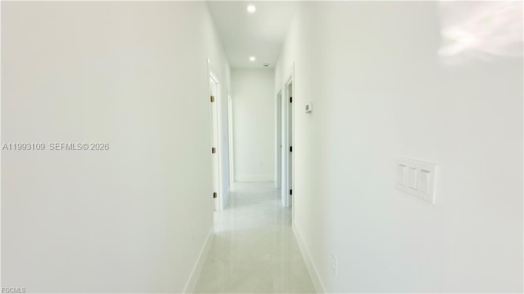 Brand-new construction with income-producing potential! This beautifully designed home offers a total of 4 bedrooms and 3 bathrooms, including a 3-bedroom, 2-bath main residence plus a private 1-bedroom, 1-bath apartment complete with its own kitchen and separate entrance. Ideal for investors or owner-occupants seeking rental income, guest quarters, or multigenerational living. This property features porcelain flooring throughout, modern cabinetry, and a stunning 7-foot island with quartz countertops that anchors the kitchen with style and functionality. The spacious primary suite includes a walk-in closet, while all bathrooms are enhanced with modern LED mirrors for a sleek, contemporary touch. Enjoy outdoor living with a covered lanai and a large backyard with plenty of room for a pool. Additional highlights include impact-resistant windows and doors and an oversized driveway for ample parking. Conveniently located near SR-82 in a quiet low-traffic area, this property offers easy access to Fort Myers, hospitals, shopping, and schools. This is a fantastic opportunity to own a versatile, modern home in a growing area.