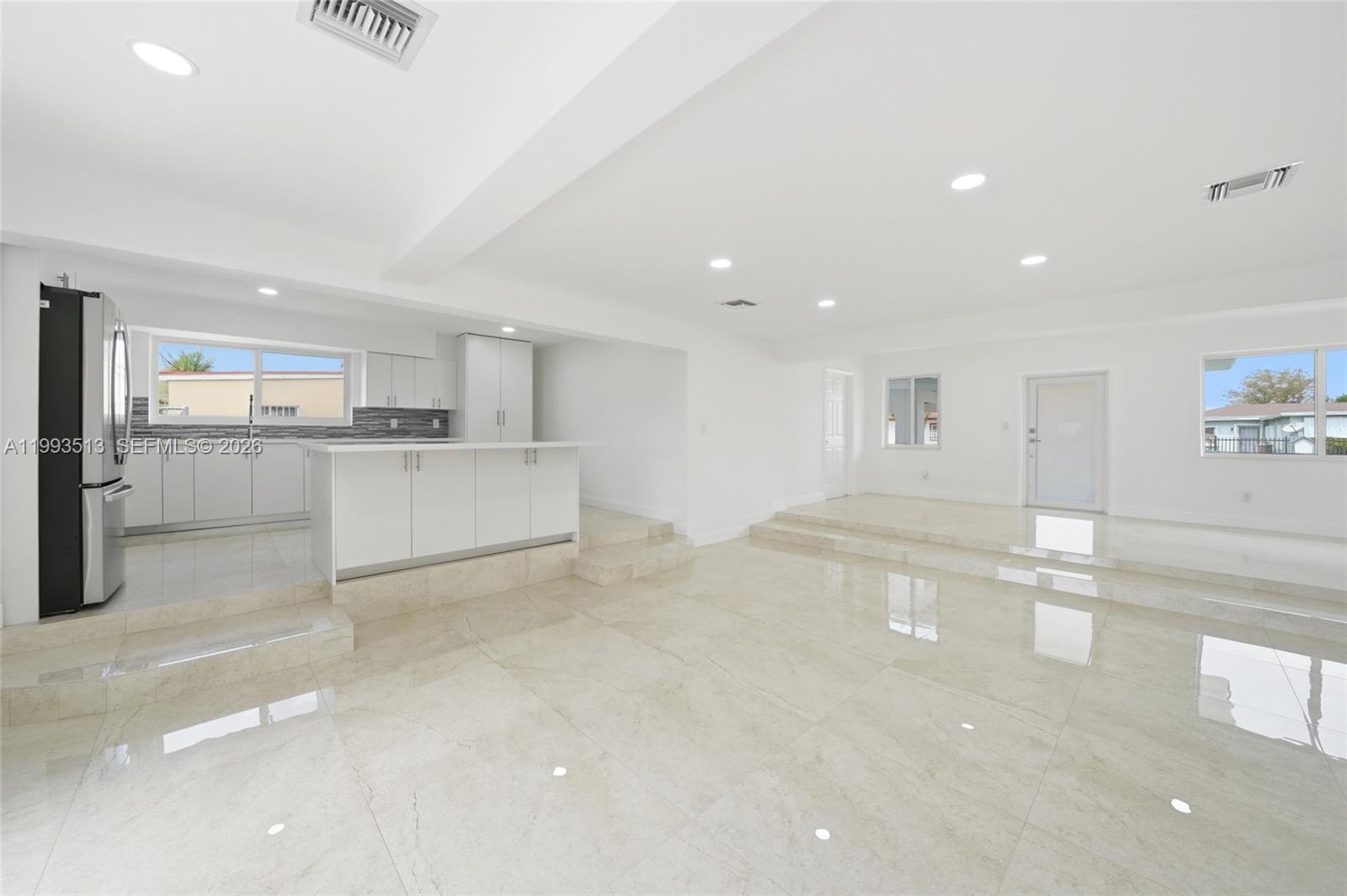 This move-in ready home features a 2025 roof, impact windows and doors, updated plumbing, full electrical upgrade, and a redesigned interior layout. The open kitchen includes a 6x4 island, gas range, new appliances, and flows into spacious living areas with 30x30 porcelain tile floors throughout. Additional highlights include a new permitted driveway, Certificate of Occupancy, a 5-ton A/C (2020), covered carport, patio area, and a large backyard with water views, perfect for relaxing or entertaining. Conveniently located near major highways, shopping, dining, schools, and Hard Rock Stadium. No HOA.