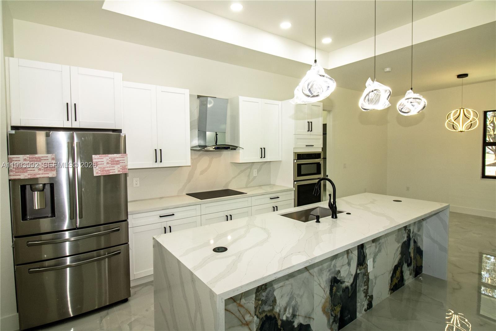 Welcome to this stunning new-build (2026) home on a spacious lot in one of the fastest-growing areas of Lehigh Acres, Florida. This home features 4 bedrooms and 3 bathrooms, a spacious master suite, and custom closets. Enjoy the large kitchen with an oversized island that adds a touch of elegance to the modern kitchen, equipped with brand-new stainless steel appliances. High ceilings provide abundant natural light, and a deck with an outdoor kitchen and protective netting is perfect for family gatherings. This beautiful property offers abundant LED lighting throughout, a modern fireplace, impact-resistant doors and windows, a 2-car garage, and an in-house washer and dryer. The interior of this home boasts unique and luxurious features. Can't find the perfect home? Trust me, this is it. Ready to show.