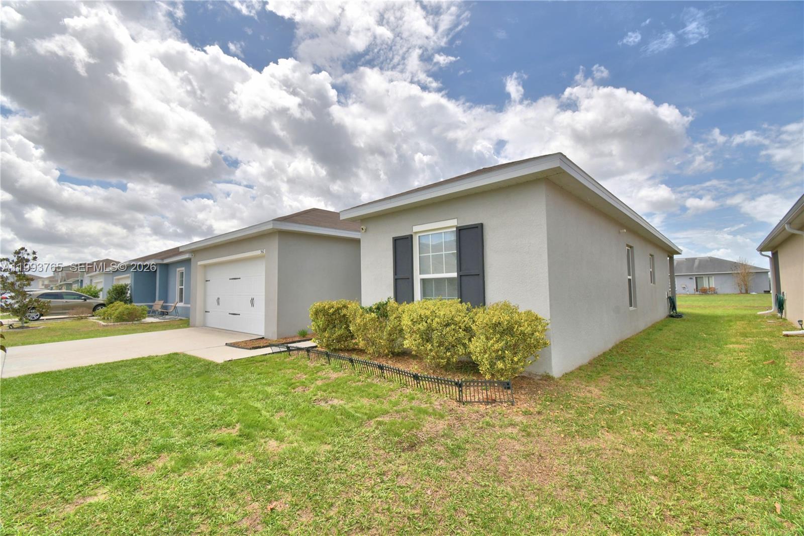 Welcome to the Eagle Landing community in Winter Haven, FL. This well-maintained single-family home is move-in ready and waiting for its new owner(s). The open-floor concept creates a comfortable flow throughout the main living areas, while the split floor plan provides added privacy for the primary bedroom and bath with spacious walk-in closet. The kitchen features stainless steel appliances and granite countertops, offering both style and functionality. Additional conveniences include a laundry room, two car garage and low HOA dues, making this home an affordable and practical choice. Experience the charm of small-town living while enjoying the growth and expansion happening throughout Winter Haven. Conveniently located just minutes from Legoland, shopping, dining, and entertainment, and centrally positioned between Tampa and Orlando for easy travel in either direction. Solar panels will be paid off at closing, providing the new owner with the benefit of low electricity bills. The spacious backyard offers room to relax or entertain.