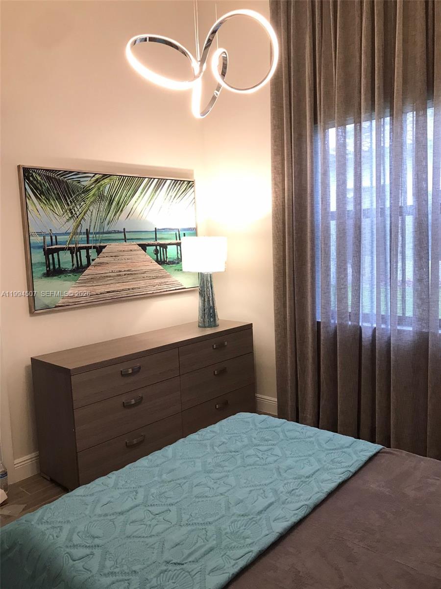 A distinguished modern-classic estate offering five bedrooms and three bathrooms, masterfully designed to embody timeless elegance and contemporary comfort. Bathed in natural light, the residence is defined by its soaring 12-foot ceilings and expansive 47-inch tile flooring, creating a seamless sense of scale and sophistication throughout. The grand primary suite is a private sanctuary, featuring bespoke custom closets and a spa-inspired bathroom complete with a separate glass-enclosed shower, soaking tub, and an indulgent steam room. Designed for elevated living and effortless entertaining, the home showcases two elegant living areas and a gourmet open-concept kitchen appointed with translucent granite countertops, refined indirect lighting, and dual refrigerators to accommodate the most discerning culinary needs. Outdoors, a resort-style ambiance unfolds with a screened-in pool and a fully equipped barbecue area, offering the perfect setting for both intimate relaxation and upscale gatherings. The property is further enhanced by custom-crafted furnishings, a fully fenced perimeter for privacy, an electric vehicle charging station, and an array of premium upgrades throughout.