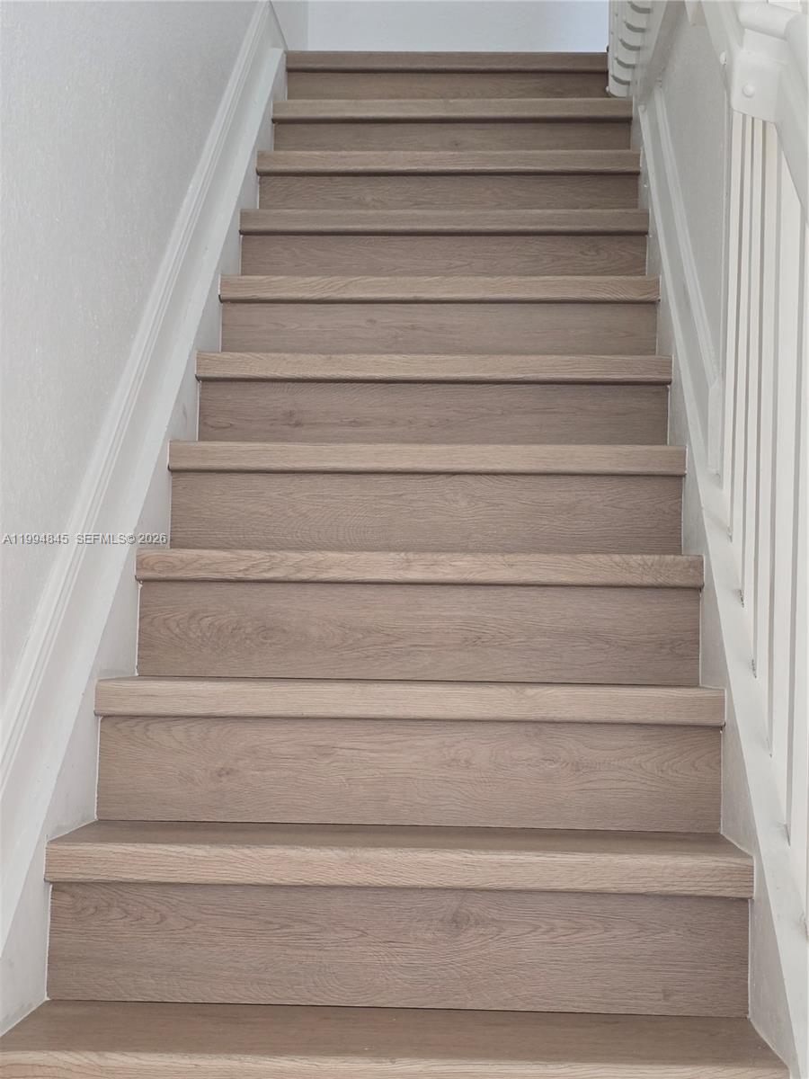 This property is a two-story townhome with 3 bedrooms and 2.5 baths, freshly painted and completely updated with new premium wood-like vinyl flooring on the stairs and the entire second floor; fully renovated kitchen cabinets and countertops including also new sink, water connections and drains, faucet, waste disposal and main valves; new bathroom vanities featuring quartz tops are just installed, including as well new water connections, main valves and drains for a long lasting peace of mind; new painted bifold doors, lamps and locks, with new blinds on all the windows and sliding doors, that have all just been serviced, including brand new screens and new locks for all the hurricane shutters and a fully paved back yard with a just installed new fence; just to make sure all works perfect for your convenience. This townhome is located at Villas at Carmel, a very well-kept neighborhood part of Malibu Bay a safe and beautiful gated community, with a privileged location on Campbell Dr at less than 2 miles straight from the Turnpike access ramp and conveniently nearby to great shopping and dining places; It features lake views, walking areas and a gorgeous clubhouse with swimming pool, gym and regular activities for its residents, This is your opportunity to own a beautifully remodeled, turnkey, two story townhome at a very good price.