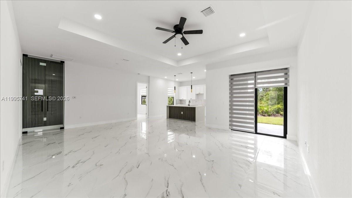 Enjoy luxurious living with high ceilings and elegant porcelain wood tiles throughout. Enjoy ultimate relaxation with its stunning modern bathrooms. The property features four spacious bedrooms and two exquisitely decorated bathrooms. It features an elegant gourmet kitchen with top-of-the-line Samsung appliances, designed for the ultimate culinary experience. Security and durability are guaranteed, with impact windows and doors (the best on the market) and 8-foot-high interior doors that add majesty. Step outside to your private oasis, with a spectacular and relaxing view of a beautiful patio where you can enjoy the most beautiful sunsets. With its open layout and luxurious flooring, this home offers unparalleled comfort and style, including epoxy flooring in the garage. The thoughtfully landscaped garden features premium trees that enhance the property's charm. Don't miss this incredible opportunity! Schedule your showing today!