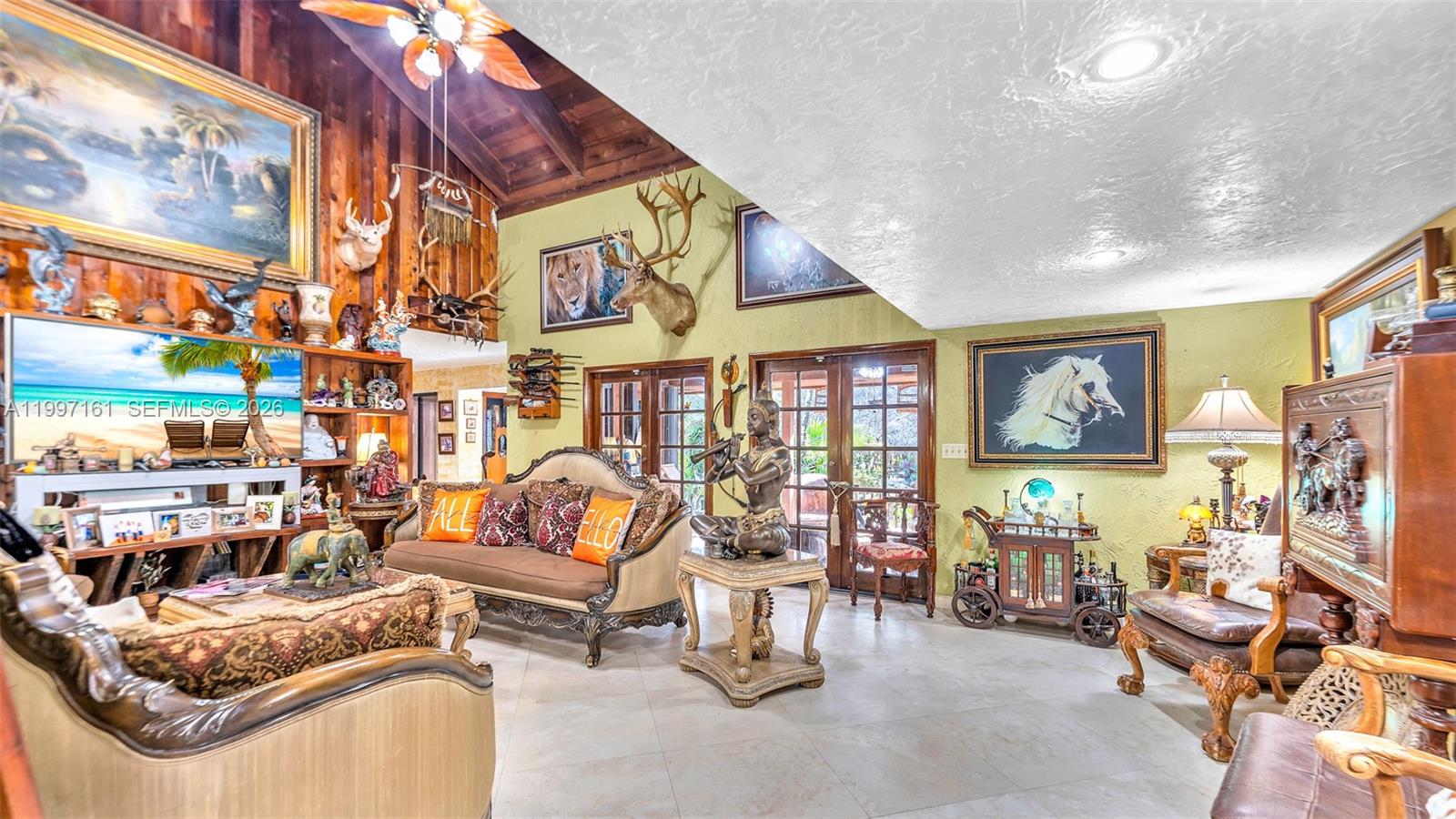Discover the potential of this exceptional property located in the peaceful and fast-growing Redland area of South Miami-Dade. Set among mature greenery and wide-open spaces, this rare blend of privacy, space, and opportunity—perfect for buyers seeking room to grow, invest, or create their ideal lifestyle. This extraordinary estate offers 4–5 acres of private, fully usable land with unmatched versatility. The main residence features 5 bedrooms & 3 bathrooms, built with solid concrete block construction accented by red cedar, impact windows & doors, and a warm, inviting fireplace. A tucked away 1/1 guest house for extended family or guests, and a dedicated office house, ideal for work. Designed for entertaining, enjoy expansive outdoor living spaces, a full exterior kitchen, BBQ, and multiple tiki huts with designated entertainment areas ideal for gatherings, events or meditation. Equestrian and agricultural amenities include horse stables, animal barns, and a private aviary, perfect for bird enthusiasts or specialty use. The open acreage supports livestock, farming, or recreational pursuits, all while offering privacy and serene country living with convenient access to major roads and amenities. Minutes away from the Florida Keys.