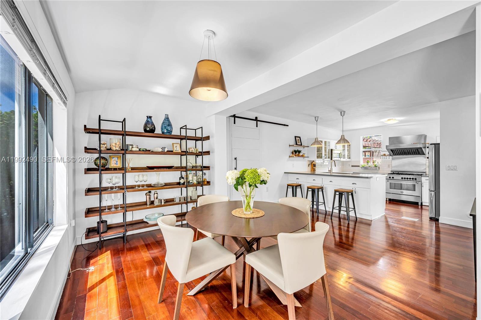 Welcome to this 1922 Mediterranean Revival residence in the heart of East Shenandoah, where historic charm meets modern tropical living. Situated on a lush, private corner lot, this two-story home offers comfort, character & easy livability. The property features a 3BD/2BA main house plus a 1BD/1BA guest cottage. Step inside to an open-concept floor plan filled with natural light & garden views, complemented by Brazilian cherry wood floors & generous living areas. The chef’s kitchen is equipped with a Bertazzoni gas range, granite countertops & a large pantry/utility room. Upstairs offers 2BD/1BA, while 1BD/1BA is conveniently located on the main level. A detached cottage provides exceptional flexibility, ideal for guests, a home office, or potential rental income. Impact windows & doors throughout enhance both security & the home’s bright, airy feel. Outdoors, a private oasis awaits. Enjoy a lagoon-style pool surrounded by lush tropical landscaping, along with a covered patio & outdoor kitchen, perfect for entertaining. Additional features include a remote electric gate, carport, city sewer connection & a non-flood zone location. Ideally situated in one of Miami’s most walkable & historic neighborhoods, just minutes from Brickell, Coconut Grove & Coral Gables, this home offers the best of city living with a true sense of privacy & retreat.