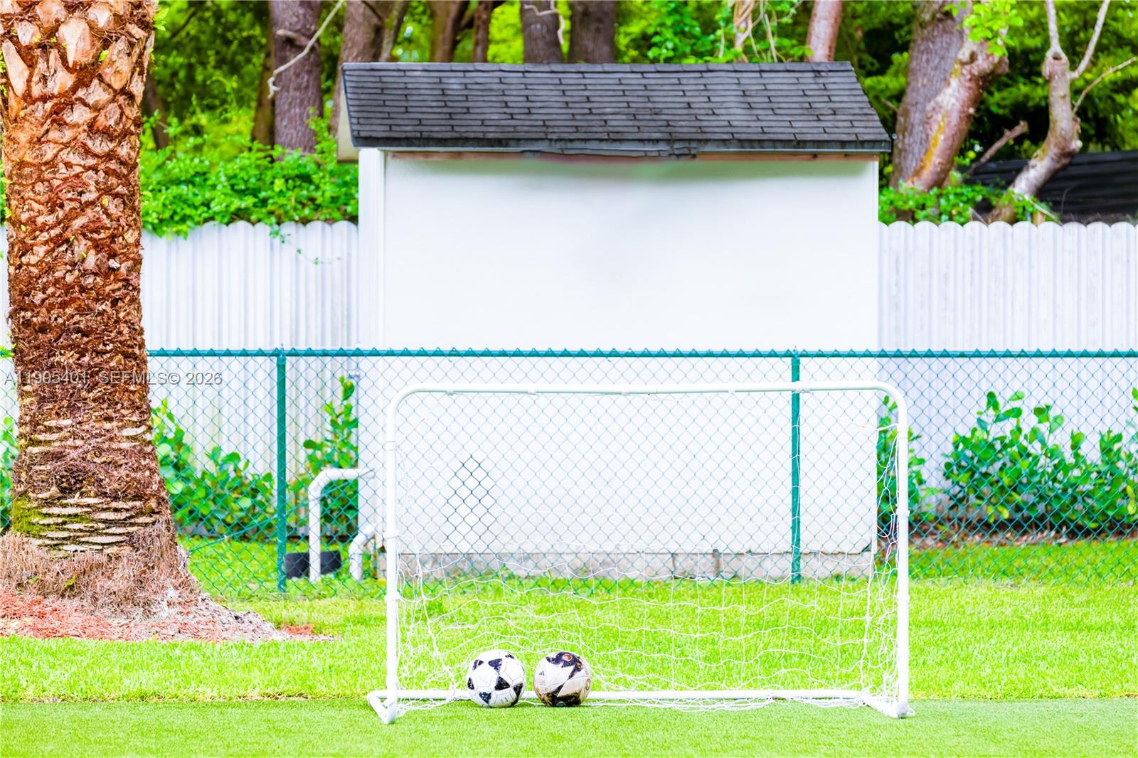 The house features bathrooms and a kitchen that were completely remodeled in 2024. Also added in 2024 was a 50-foot by 18-foot infinity-edge pool, equipped with a heater, a saltwater system, and full automation. The property boasts a synthetic-turf soccer field and a sandy beach volleyball area. The lot spans nearly an acre and is divided by a fence into two sections—each with its own independent entrance—making the undeveloped portion ideal for a business venture or for building a guest house. The driveway features a covered canopy tall enough to shelter a boat or an RV. The home is served by well water and includes a two-car garage. Currently, the property operates as an Airbnb rental; it comes fully furnished and equipped, allowing a new owner to seamlessly continue the business—a process currently managed by a dedicated administrator. The entire operational infrastructure is already in place to ensure the business continues without interruption; we can provide Airbnb financial statements so prospective buyers can review the revenue figures. The roof and air conditioning system were already installed when we purchased the property in 2021, though they were relatively new at the time. This residence offers spacious interior and exterior living areas, featuring beautiful garden spaces with tremendous potential for a wide variety of uses.