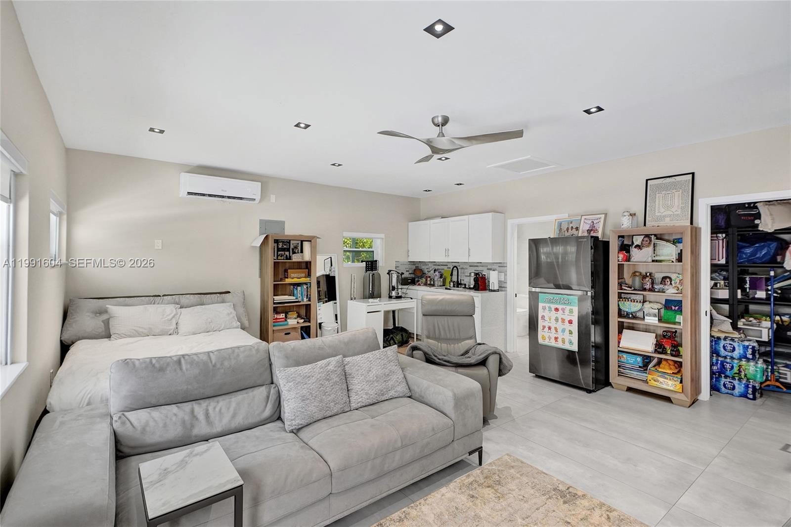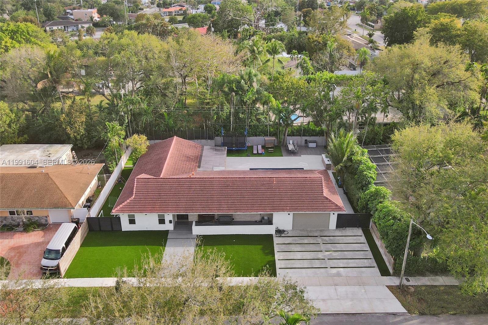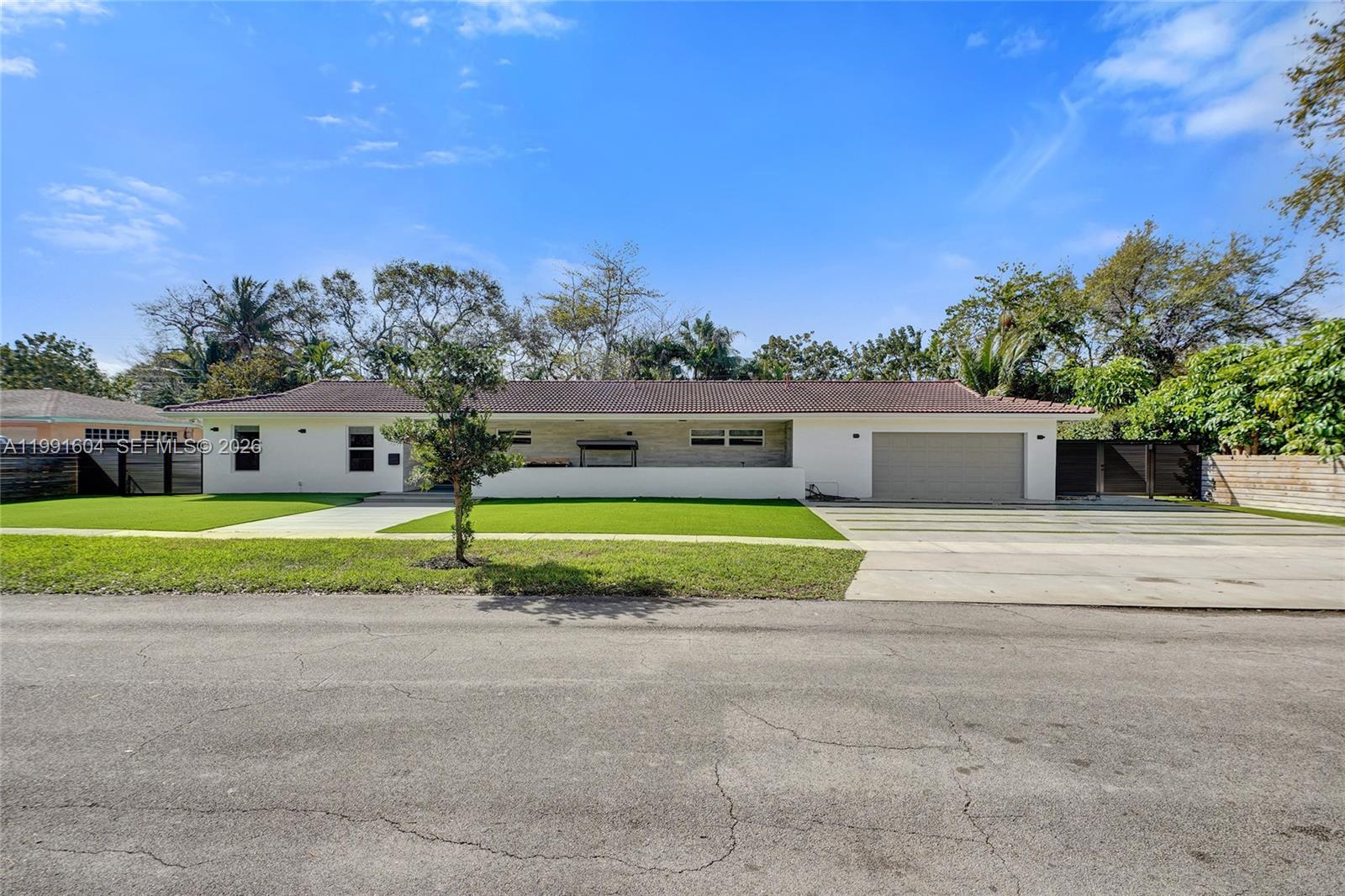 Welcome to this beautifully maintained modern one story home in the sought after Skylake neighborhood of North Miami Beach. Located on a semi private street and set on a lot of up to 13000 sq ft, this property offers privacy, comfort, and style. The home features 4 bedrooms and 3 bathrooms, including a spacious primary suite with a sitting area, dual sinks, and a sleek shower. A split bedroom layout provides flexibility and privacy. The layout includes a formal dining area, a family and dining combination, and a counter that connects the kitchen and living areas. The kitchen features a Taj Mahal marble countertop and essential appliances including a wall oven, electric range, microwave, dishwasher, and disposal. Porcelain flooring runs throughout, and impact windows provide security and efficiency. The home also includes a security camera system. Enjoy the backyard with a mosaic tiled pool, open porch, outdoor kitchen, artificial turf, and plenty of space for entertaining. Additional features include a 2 car garage, driveway parking, laundry area, and central air and heating. Do not miss this opportunity in North Miami Beach.