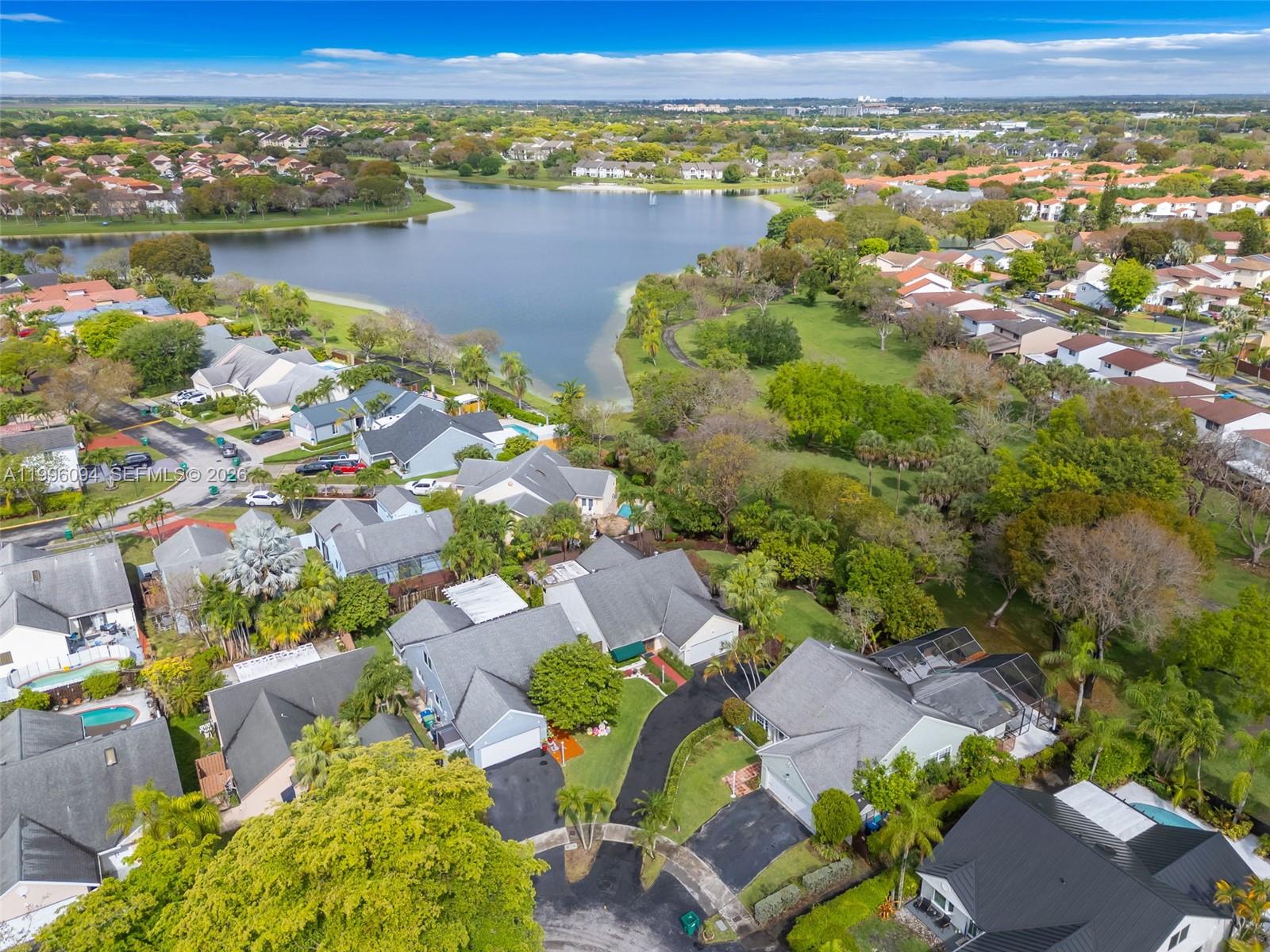 Welcome to one of Chantarelle Ravena's most coveted lots, a sprawling 10,000+ sq ft property where well-kept Spanish tile flows throughout, anchoring the home with warmth and timeless character. The flexible floor plan includes the primary suite, a second bedroom, and two full bathrooms on the main floor for effortless daily living, while the upper level adds a third bedroom and full bath, ideal for guests or a quiet home office. A dedicated media room (once the fourth bedroom) rounds out the home's versatility while adding natural light to the downstairs living space. The two-car garage features built-in overhead storage, and thanks to excellent insulation, all areas of the home stay comfortable year-round, even through South Florida summers. Step outside and the real magic begins. The beautifully landscaped backyard offers extensive yard space with more than enough room for a private pool. A remarkable collection of tropical fruit trees lines the property including banana, mango, lemon, lime, lychee and more, a true South Florida paradise just steps from your kitchen. The private back gate opens directly onto the Hammocks' famous lakeside walking path, putting one of Kendall's most beloved outdoor amenities right at your doorstep. Don't miss the chance to secure this rarely available 10,000+ sq ft lot in Chantarelle Ravena.