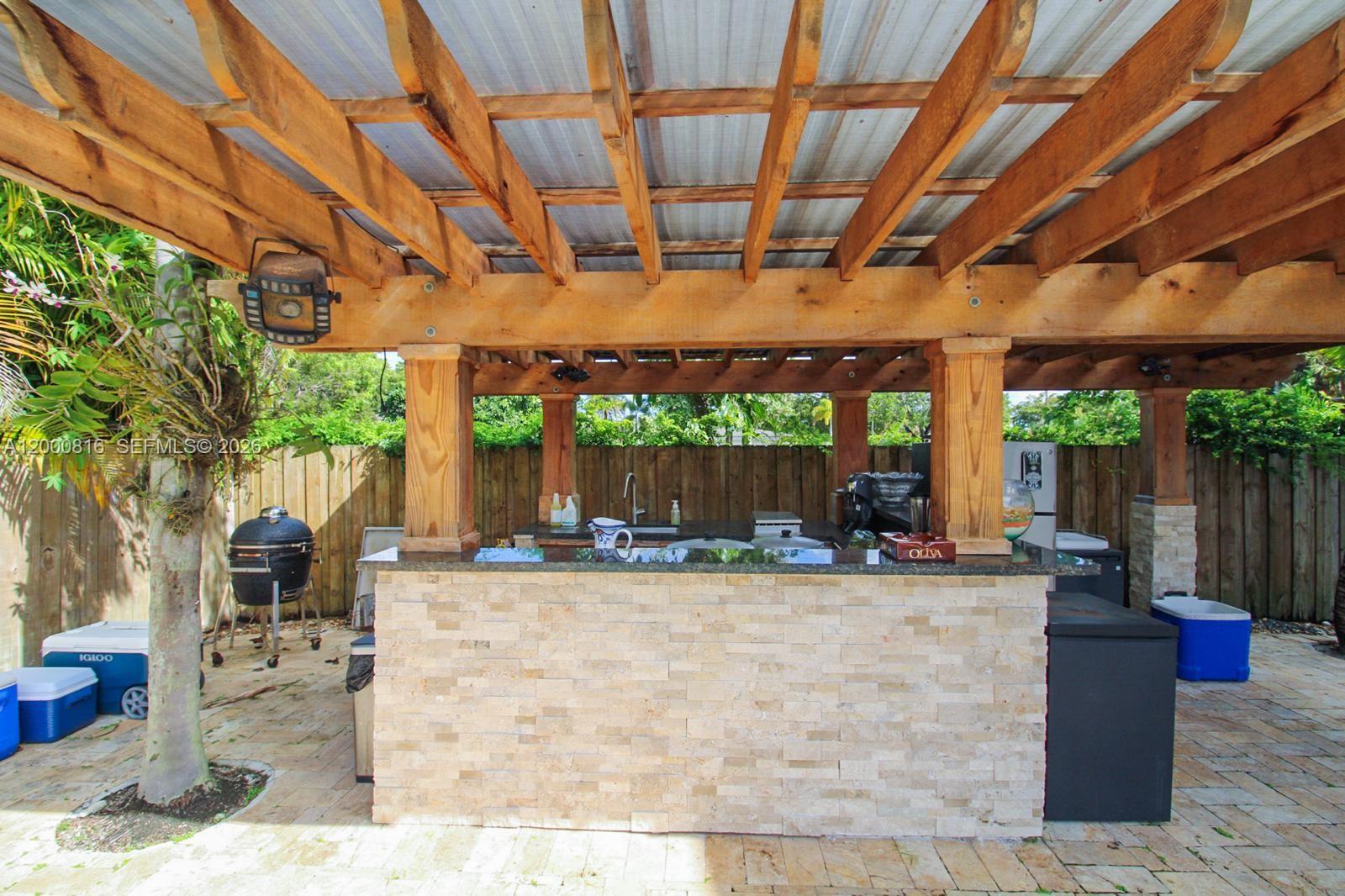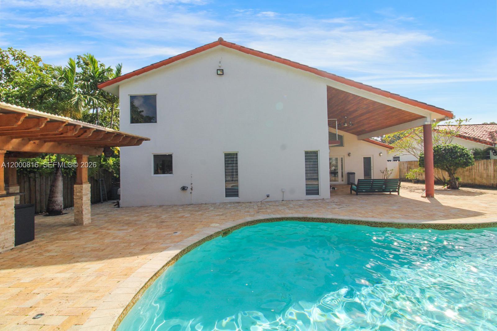Beautiful 4-bedroom, 4-bathroom home located in the heart of Miami. This property features a stunning private pool with a built-in poolside bar, perfect for relaxing or entertaining guests, along with a spacious patio area surrounded by lush tropical landscaping. The home offers an open and expansive kitchen with plenty of counter space, ideal for cooking and family gatherings. Conveniently located near shopping centers, restaurants, and major highways, this residence combines comfort and accessibility. Move-in ready and designed for modern living — a must-see property!