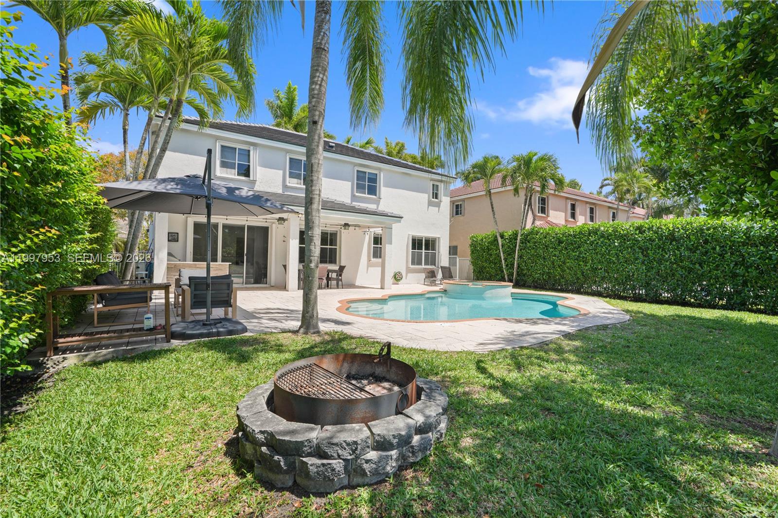 Beautifully maintained home offering the perfect blend of comfort, style, and outdoor living—set on a premium lot with serene canal views and no rear neighbors. Step inside to a bright and inviting layout with high ceilings in the living and dining areas, designed for both everyday living and entertaining. The home features unique custom details including a striking wood accent wall, elegant antique mirror feature, and a completely tiled garage floor for a clean, finished look. The kitchen showcases custom-built cabinetry and cooking island, adding both character and functionality to the heart of the home. This property is equipped with accordion shutters throughout, providing full storm protection and peace of mind. Major upgrades include a NEW ROOF (2025) and HVAC systems replaced in 2023, offering long-term value for the next owner. Enjoy South Florida living at its best in your private backyard oasis, featuring a beautifully refinished pool with integrated spa, perfect for relaxing or entertaining. The fully equipped summer kitchen includes a premium KitchenAid grill and Bull griddle, ideal for hosting gatherings. A dedicated fire pit area adds the perfect touch for outdoor evenings, from wood-burning cookouts to family nights under the stars. A rare opportunity to own a move-in ready home with privacy, thoughtful upgrades, and exceptional outdoor living.