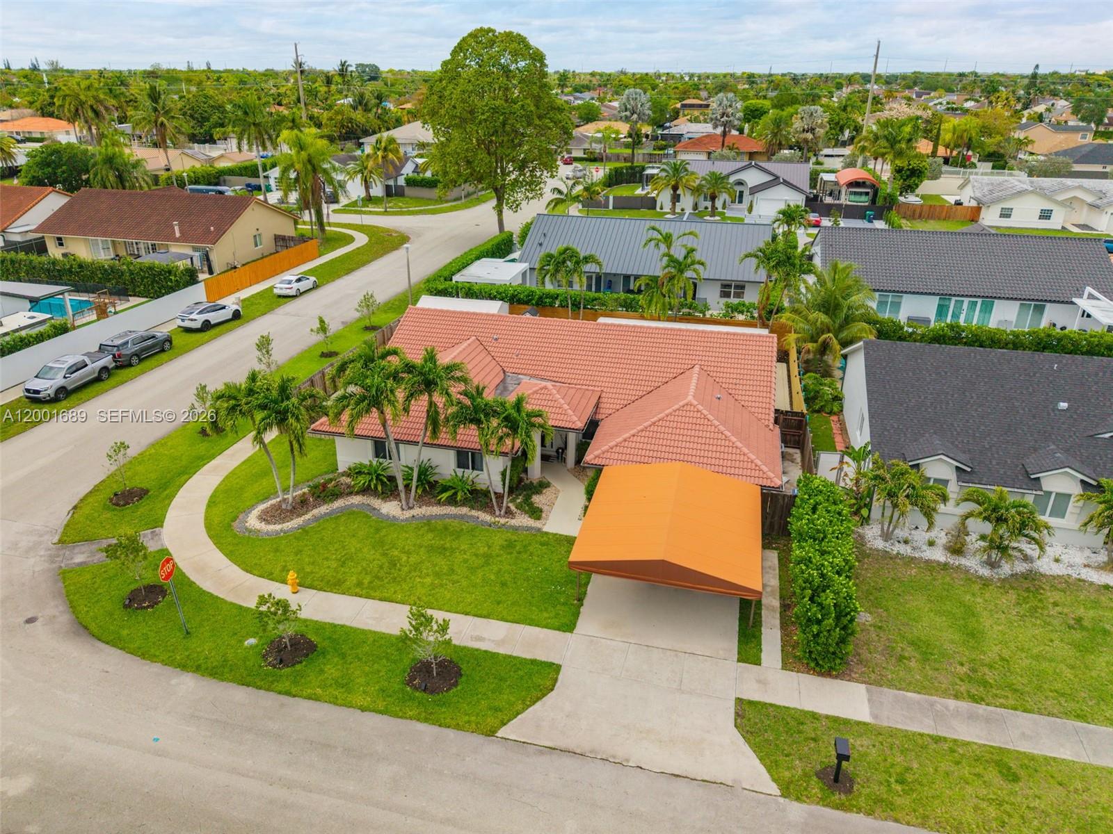 Excellent residential neighborhood with great school, great location and no HOA! Enjoy this beautiful, one-story home located on a corner lot. Offers 4 bedrooms and 2 and 1/2 bathrooms in 8, 266 total lot. Protected with impact windows, two AC units, 2 cars garages, security system and stainless steel appliances. Kitchen has been remodeled and now has an industrial size fridge, Garage has wall to wall built in cabinets and 4th bedroom has built in desk Space for boat or RV and enough to build a pool. Do not miss this great opportunity! Completely remodeled! Showings by appointment only!