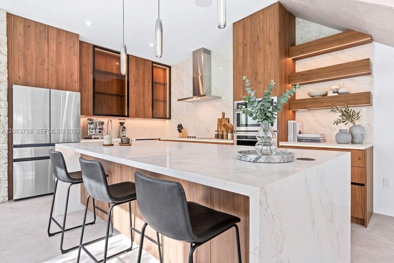 Modern luxury meets timeless Miami elegance in the heart of Silver Bluff. These brand-new 4-bedroom, 4-bathroom townhomes offer nearly 3,000 sq. ft. of thoughtfully designed living space just minutes from Coconut Grove, Coral Gables, and Brickell. Natural stone accents flow from the striking exterior into the grand entrance, creating a warm and sophisticated first impression. Inside, each residence features impact glass windows and doors, designer lighting, imported finishes, and built-in ceiling speakers for seamless indoor and outdoor entertaining. The chef’s kitchen is beautifully appointed with Italian cabinetry, quartz countertops, and premium stainless-steel appliances. Open-concept living spaces flow effortlessly to a private terrace and stunning coral accents —perfect for entertaining under the Miami sky. Additional highlights include smart-home technology, dry bar on the second floor, a one-car garage and pool Located within walking distance to Coral Way cafés, top-rated schools, and the vibrant lifestyle of Coconut Grove, this is a rare opportunity to own luxury new construction in one of Miami’s most desirable neighborhoods.