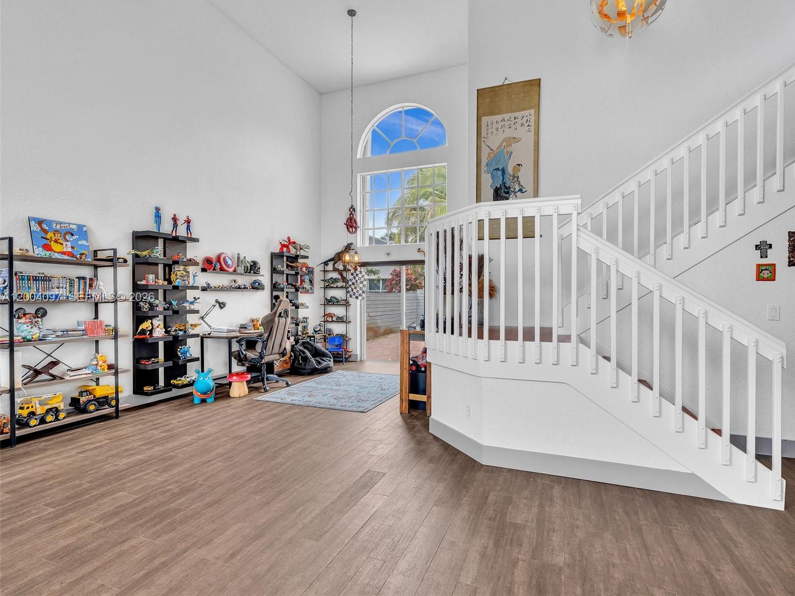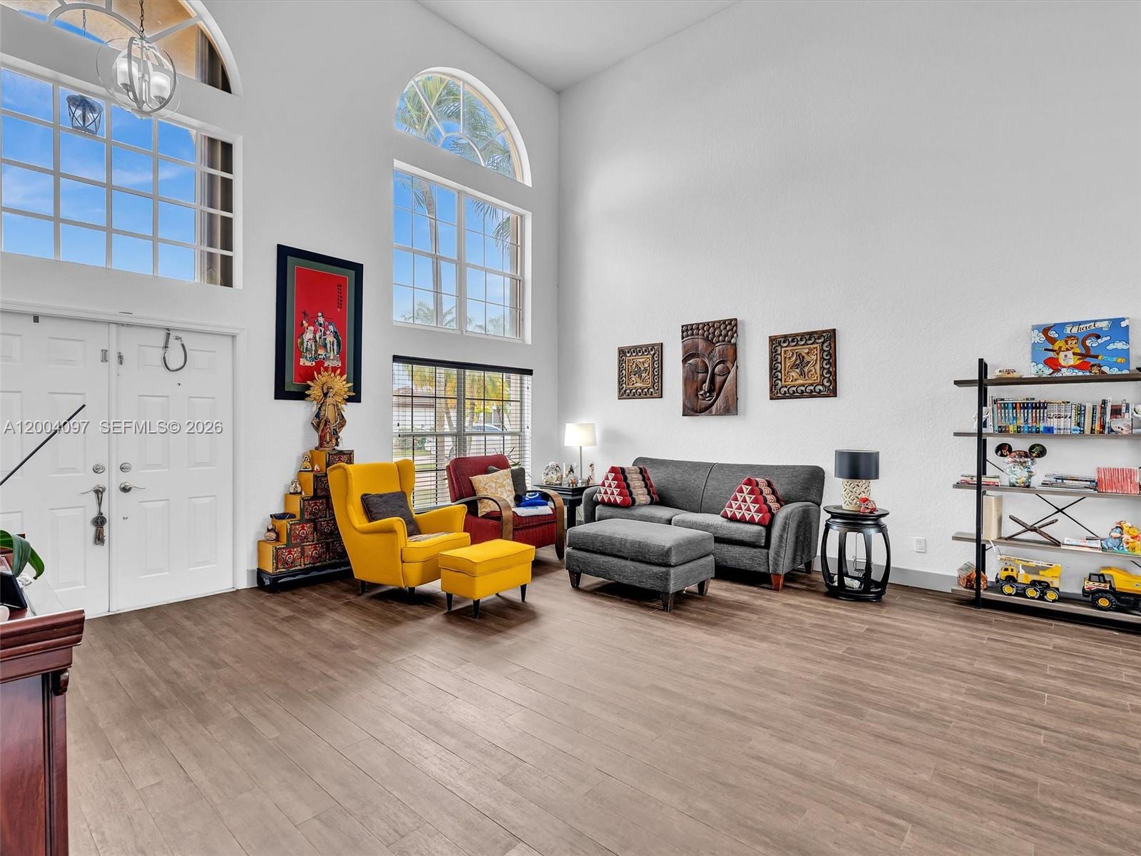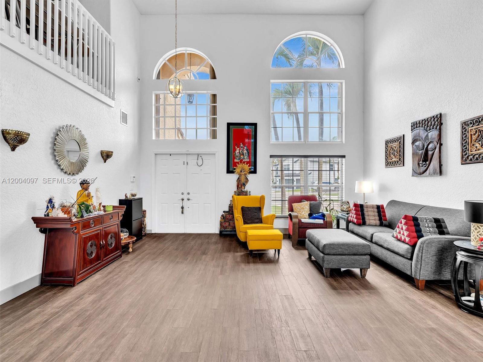 Beautifully remodeled 5-bedroom, 3 full-bathroom residence offering 3,378 sqft of living space, located in the desirable Silver Lakes community in Miramar. Renovated in 2017, this home features modern finishes and major upgrades throughout, including fully updated plumbing for added peace of mind. This stunning two-story home offers low HOA living within an established, serene neighborhood. Soaring ceilings of approximately 25 feet fill the open interior with natural light, enhancing the spacious layout. The first floor features elegant tile flooring and includes one bedroom, ideal for guests or multigenerational living, while the upstairs offers laminate floors and a spacious loft perfect for a home office or additional living area. The home includes a 3-car garage, two A/C units, a newer water heater, and updated appliances. The kitchen showcases granite countertops and flows seamlessly into comfortable living spaces, ideal for both everyday living and entertaining. All three bathrooms have been tastefully remodeled. Additional features include accordion shutters throughout, an impact sliding door in the living room, and gutters. Move-in ready and meticulously maintained.