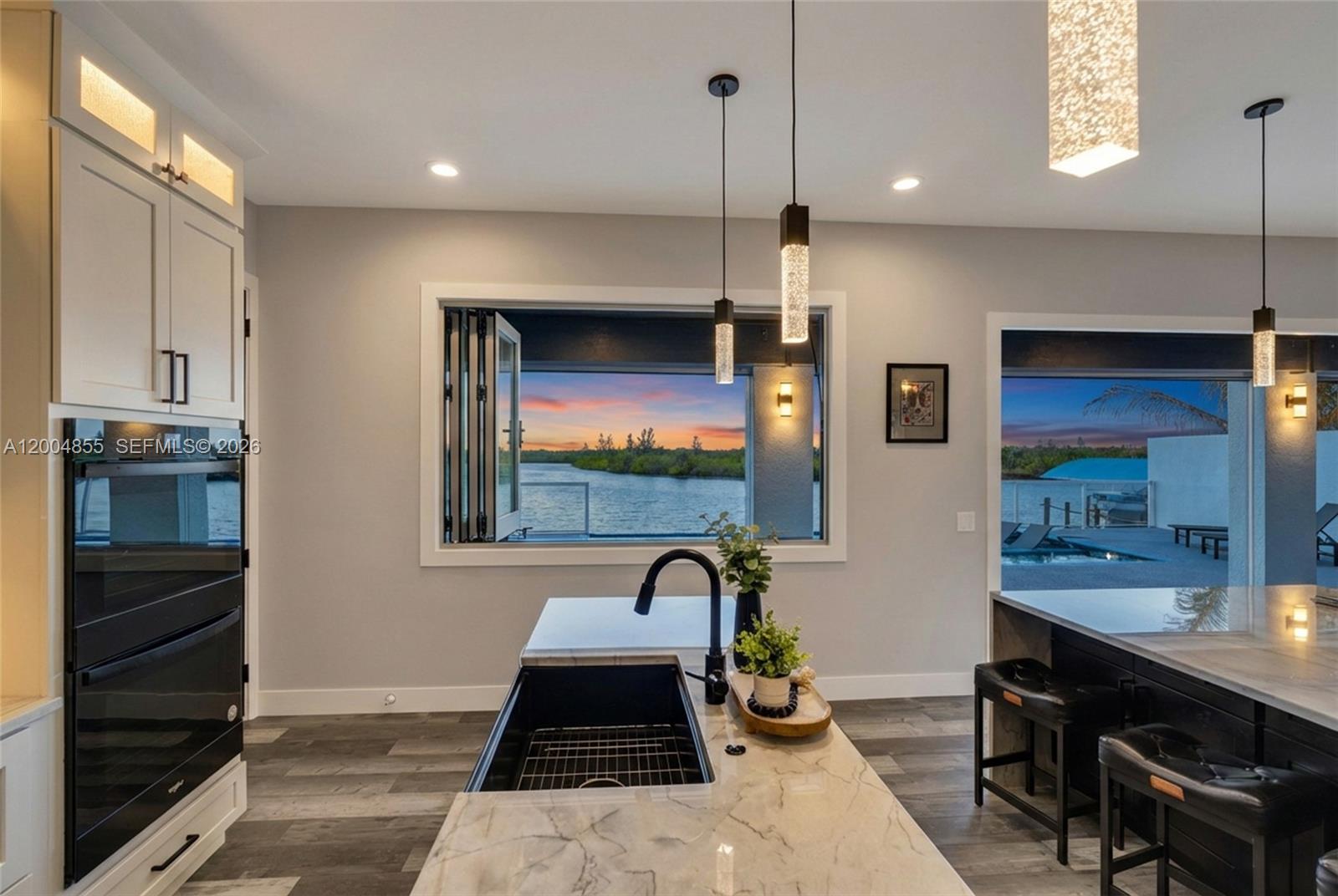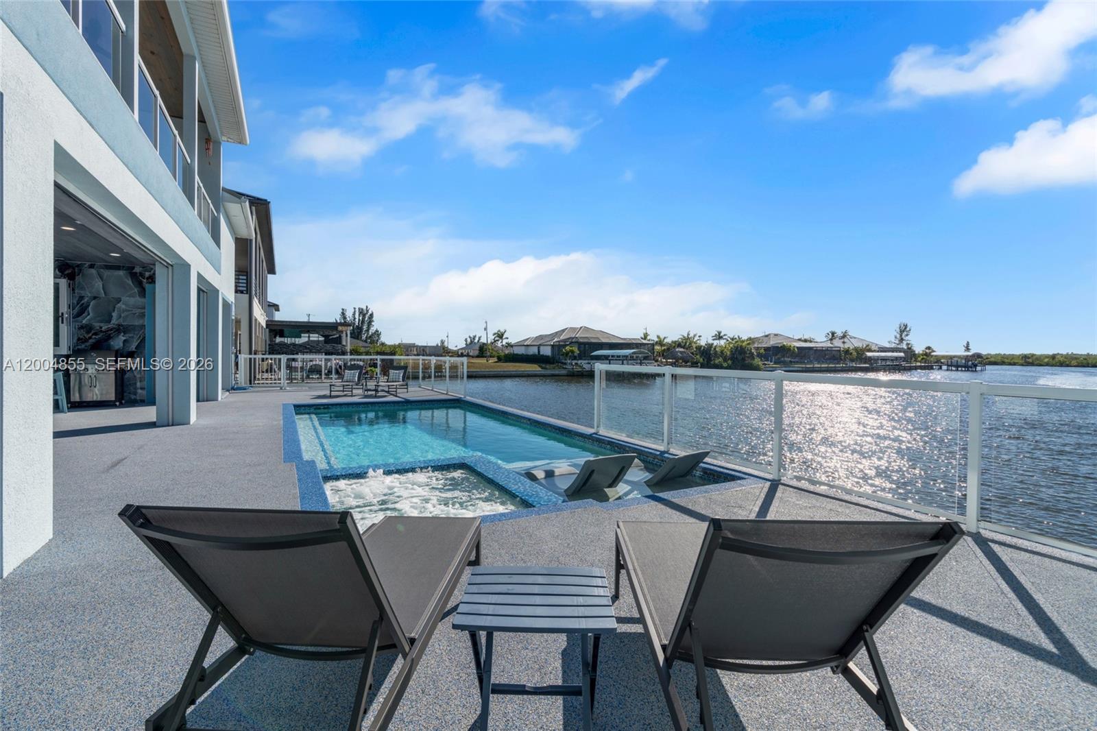 Experience modern coastal luxury in this custom-built 2025 waterfront home with direct sailboat access to the Gulf. Offering 3,784 square feet of beautifully crafted living space, this residence blends elegance with function. The home features 3 oversized bedrooms, a private office, a theater/flex room with bar, and 4.5 bathrooms. Each bedroom includes an en-suite bath, while one guest suite offers a private washer and dryer—ideal for extended stays or multigenerational living. The chef’s kitchen impresses with a pot filler, two waterfall-edge islands with seating for eight, and a walk-in butler’s pantry with a second dishwasher—perfect for entertaining. Motion-activated kick lighting and dimmable lighting enhance ambiance throughout. Built for durability and efficiency, the home includes hurricane-impact windows and doors, Icynene insulation, a whole-home reverse osmosis system, and a Fuji septic system. Outdoor living features retractable and hurricane screens, mini-split systems in the garage and lanai, and a built-in bug misting system. The lanai and pool area showcase premium FloCo rubber flooring—slip-resistant, cool-to-the-touch, and highly durable.A 1,200+ square foot air-conditioned garage with 17-foot ceilings and a door opening to the lanai completes this exceptional property.
