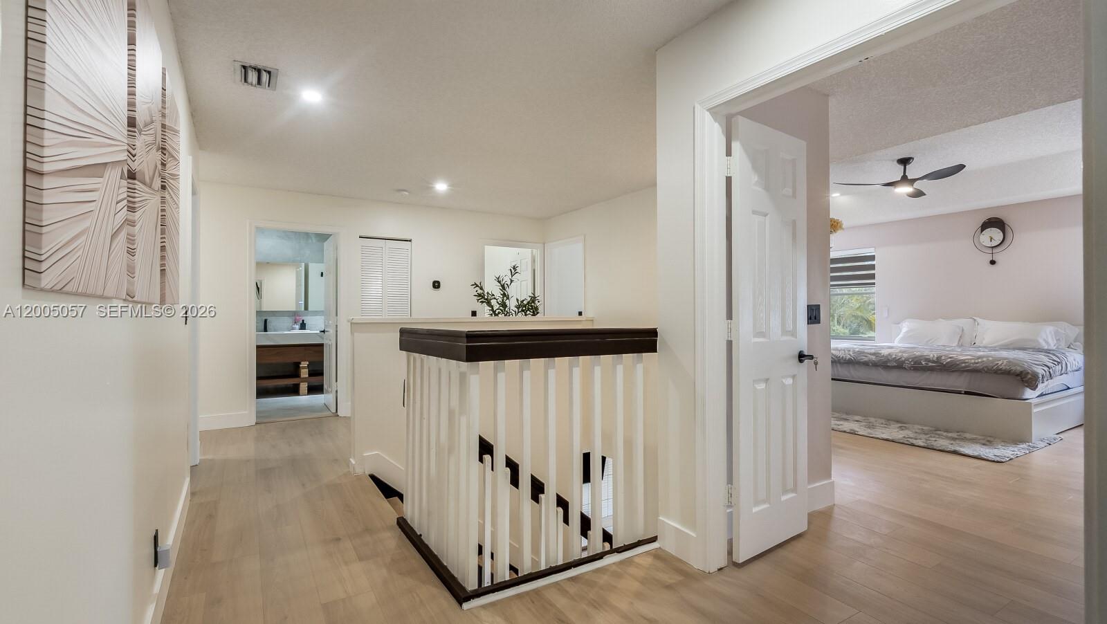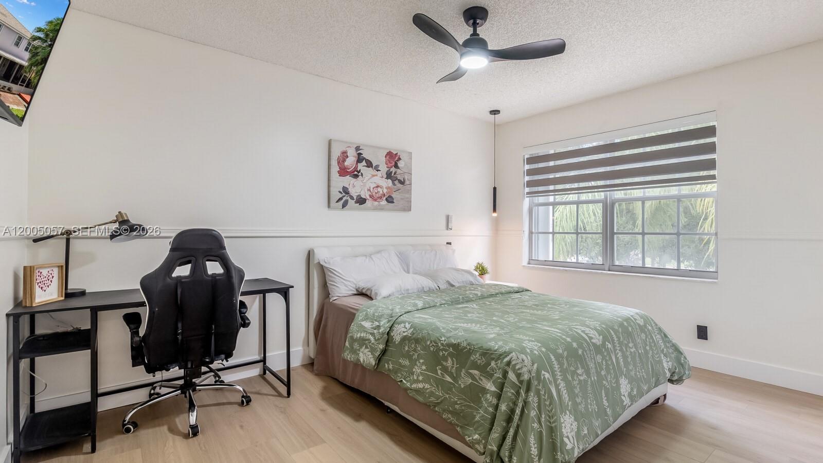 Spacious 5-bedroom, 3-bathroom home with a large kitchen and family room area. All bedrooms are located upstairs with an office on the bottom floor that could be used as a 6th bedroom. The kitchen has 42-inch wooden cabinets with quartz counter tops, and stainless-steel appliances. Large porcelain tile flooring downstairs and new laminate/vinyl upstairs. The home has a canal view with a nice large, screened patio area for outdoor cooking and entertaining family and friends. It has a double-entry staircase that you can go upstairs from the dining/living room or the family room area. Home has a new roof in 2026! It's one of the largest sq ft homes in the Hammocks complex with 3,120 sq ft living area with a total under roof area of 3,686 sq ft that includes a 2-car garage! Great home, location and family community!