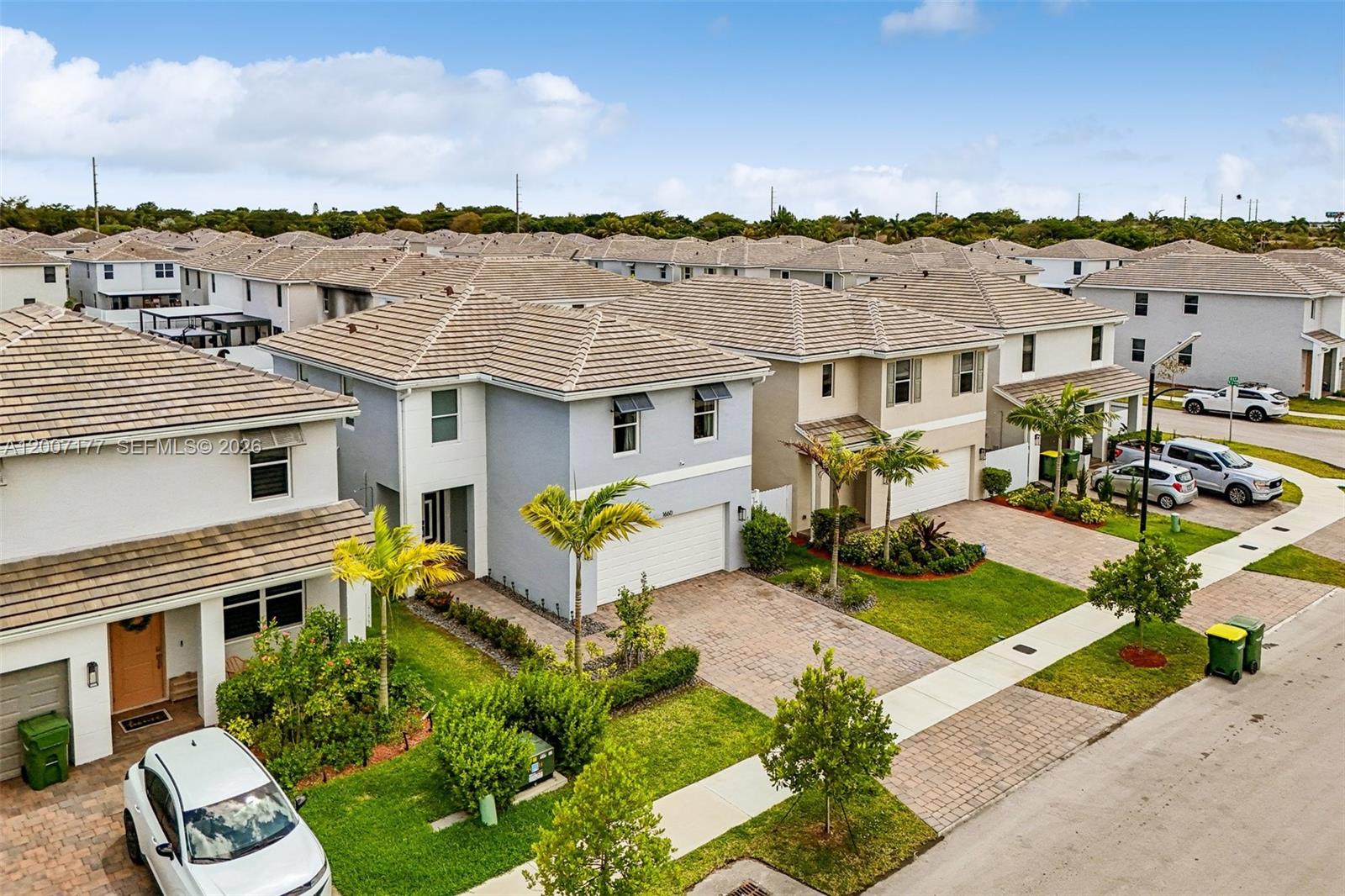 Stunning two-story home built in 2024 in a beautiful community. The interior features tile flooring, modern finishes, and a seamless flow between the living, dining, and kitchen areas. The chef-style kitchen boasts a large center island, sleek cabinetry, stainless steel appliances, and ample counter space. Generously sized bedrooms upstairs, including a spacious primary suite with a large walk-in closet and an en-suite bath. Additional highlights include impact windows and doors, a whole-home water softening system, an A/C UV system, a dedicated laundry room, and a 2-car garage. The home also offers great curb appeal with a paver driveway and a covered entry. Enjoy a private backyard with room for a pool and outdoor activities. Conveniently located near shopping, dining, schools, and major highways, this home offers comfort, space, and convenience in a sought-after Homestead location.