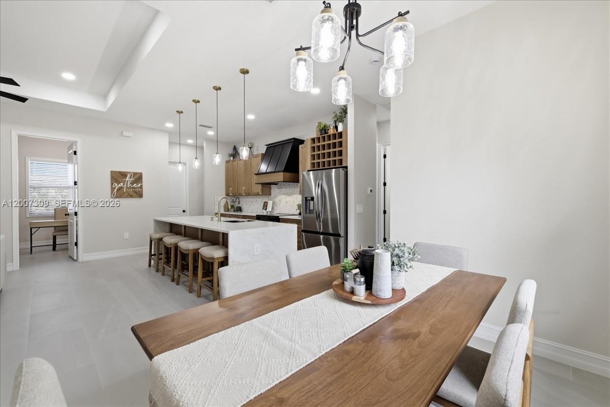 This beautifully crafted new construction home sits on an oversized lot, offering both space and privacy. Designed with quality and functionality in mind, the property features a whole-house reverse osmosis system, ensuring premium water quality throughout. The interior showcases custom cabinetry and a custom-designed range hood, complemented by a spacious kitchen island with a built-in microwave drawer for modern convenience. The primary suite includes a luxurious bathroom with a double shower head, creating a spa-like retreat. Exterior highlights include an expansive paver driveway with additional width for ample parking, a full sprinkler system, and striking stone veneer accents that enhance curb appeal. The backyard is built for entertaining, featuring a fully equipped outdoor kitchen with a gas grill. A perfect blend of thoughtful upgrades and contemporary design, this home offers comfort, style, and exceptional outdoor living.