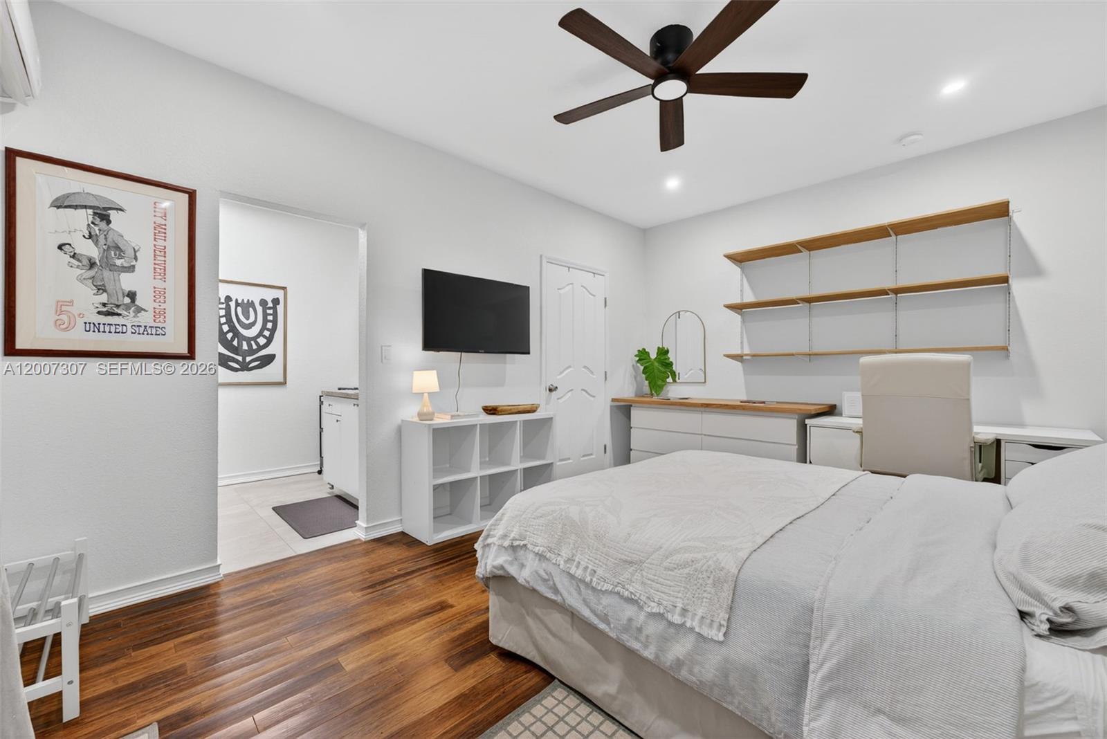 Private Compound with Work-from-Home Infrastructure This exceptional single-family estate offers a comprehensive living solution on a fully fenced, tree-lined lot. The Main residence consists of 3 bedrooms and 1 full bath, Newly Updated Kitchen, bathrooms , Impact Windows, and custom integrated wall units to use as a professional home office & Extra storage. The 1-bedroom, 1-bathroom in-law quarters with seperate entrance has income potential OR for multi-generational living. This a private enclave with native foliage, parking for 4 vehicles, and a generous yard for future pool or to expand the footprint. This home has approved plans to expand its current square footage & can be provided at Buyers Request.