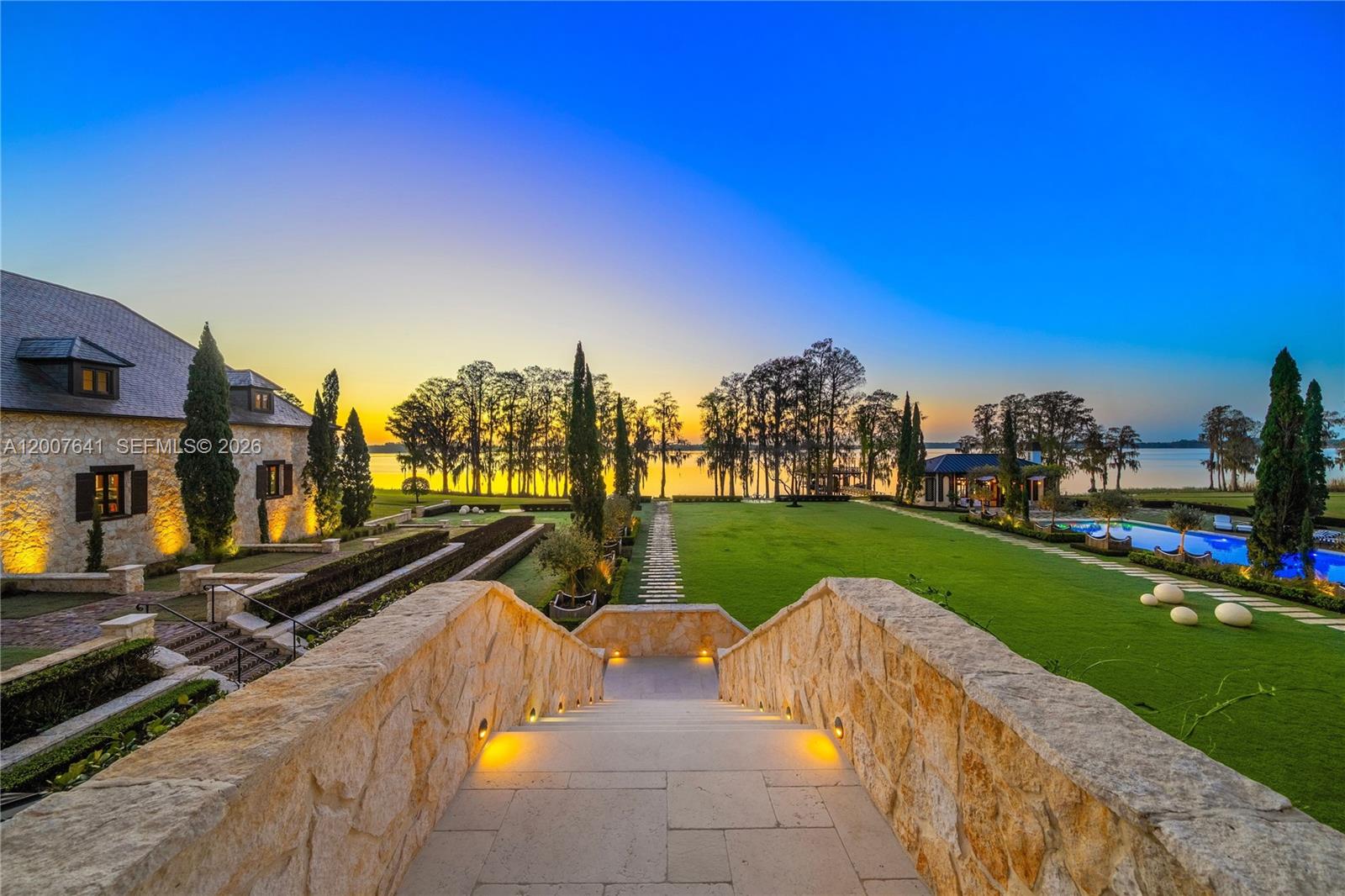 One of the most significant private estates ever built in Florida and the U.S., The Oaks Estate is an extraordinary 87-acre lakefront compound on Lake Thonotosassa, with arrival by seaplane or helicopter. Ideally located 10 min. to the executive airport and 20 min to Tampa, this authentic French Normandy château offers unmatched scale, privacy, and permanence. A 36-acre stone-walled compound anchors the estate, complemented by a 51-acre greenbelt reserve. Entry begins at a gas lamp–lit guardhouse, leading beneath mature oaks to a grand arrival of fountains and a limestone-clad residence. The 42,782 SF home showcases exceptional craftsmanship in stonework, and millwork, featuring hand-scraped French oak floors in Versailles and herringbone patterns. The grand salon with pillowtop limestone floors, opens through a gallery of 12ft arched mahogany doors to terraces framed by solid limestone columns, an architectural feat rarely seen in residential setings. The culinary wing features bespoke La Cornue Cheateau appliances, a butler’s kitchen, and family room.The Oak Room lounge offers a full service bar, wine storage, limestone fireplace and concealed theater. AWow factors: a 24-car automotive museum with a floating glass boardroom, bowling alley, billiards, cinema, wellness center with gym/spa, hammam/sauna, and indoor saltwater pool. Outdoors: 72' pool, pool house, go-kart circuit, boathouse, 1 mile jogging path, pro-equestrian, and operations comopund with automotive workshop.
