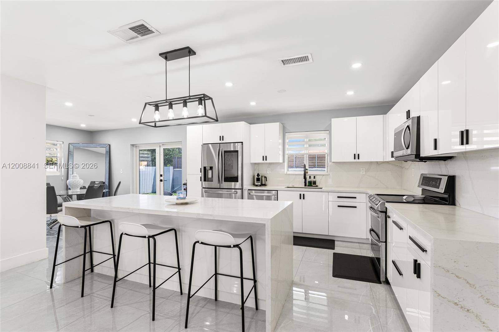 Beautifully remodeled home featuring a spacious and fully permitted 1/1 efficiency with private entrance and patio area. The efficiency includes a kitchenette, closet space, and offers excellent flexibility for extra income, guests, or extended family. It can also be easily integrated into the main home if desired. The main residence is bright and welcoming, filled with natural light and upgraded throughout. All windows and doors are impact rated. The kitchen and bathrooms feature high-end finishes with brand new appliances, offering a modern and move-in ready feel. The property sits on a large lot with an expansive backyard providing endless possibilities. Plenty of space for entertaining, and room on the side of the home to park a boat or RV. Additional features include a hot tub and storage shed. Conveniently located in a central area close to major expressways including the Turnpike and Dolphin Expressway, as well as shopping, dining, and entertainment. Situated in a quiet residential neighborhood with low traffic and proximity to quality schools.