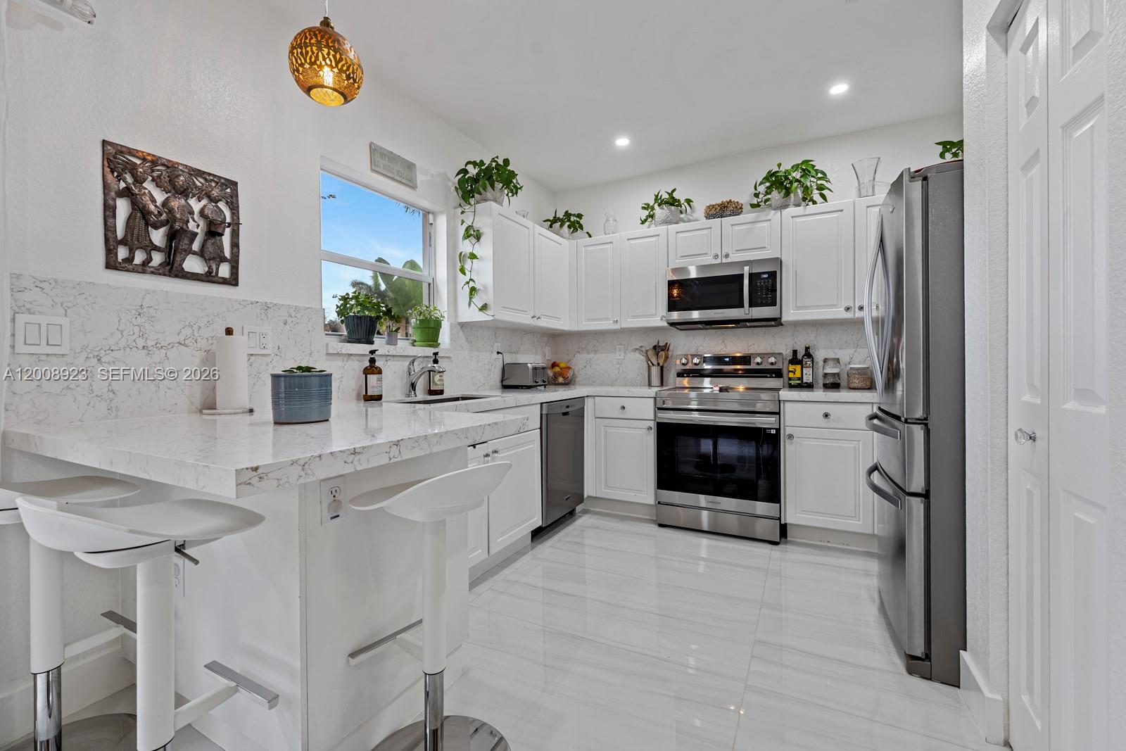 Welcome to this beautifully updated townhouse located in the highly desirable Isles of Bayshore community. This move-in ready home features a modern kitchen complete with sleek quartz countertops, brand-new cabinetry and recessed lighting throughout the first floor. Additionally, the home was remodeled with stunning white tile flooring on the first floor, creating a bright and contemporary feel. The upstairs boasts warm wood laminate floors for added comfort. The secondary bathroom and convenient half bath have been fully remodeled with stylish finishes. Nice outdoor living in the spacious, lush patio. Residents of Isles of Bayshore benefit from exceptional community amenities, including a large resort-style pool, clubhouse, and fully equipped gym. Don’t miss this opportunity!