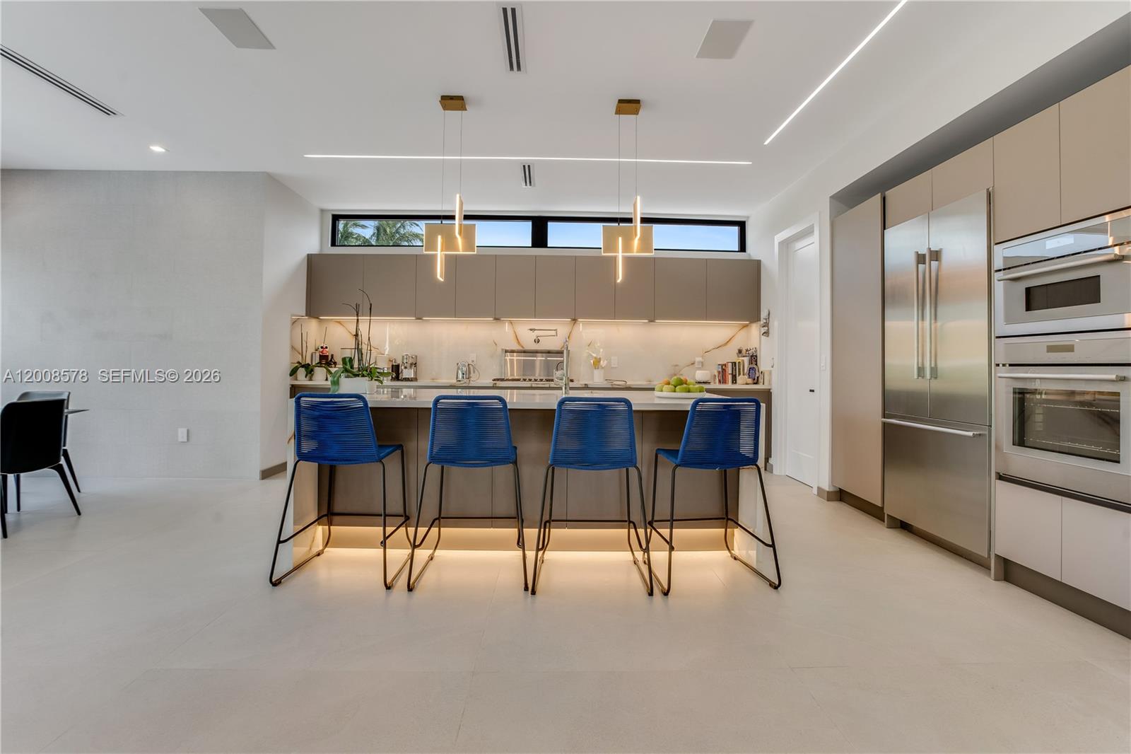 Step into your dream oasis—a masterpiece of modern luxury and timeless elegance. This newly constructed 2025 home in Surfside offers 5 bedrooms, a maid's room, and 4.5 baths across an expansive 3,124 square feet of meticulously designed living space. From the moment you enter the grand foyer, you're welcomed by soaring ceilings, sleek tile floors, and thoughtfully placed recessed lighting that creates an ambiance of sophistication. The heart of the home—a chef’s kitchen designed by Vendetta Cuccina—features bespoke cabinetry, premium countertops, a Thermador appliance package, a 5-burner gas stove, and a wine cooler. It’s a space as functional as it is stunning, perfect for culinary creations and entertaining alike. Natural light pours through hurricane-impact windows and doors, leading your gaze to the lush private backyard. Here, you’ll find a serene pool and a spacious fenced yard—ideal for lounging, hosting, or simply soaking in the Florida sunshine. Each bedroom is a retreat unto itself, complete with custom closets, while the primary suite offers a spa-like ensuite with a freestanding tub and separate shower—a haven for relaxation. For convenience, the home also includes two sets of washer and dryer units. This is Surfside’s best new construction offering—where luxury, comfort, and an enviable lifestyle converge. Don’t miss the opportunity to make it yours!