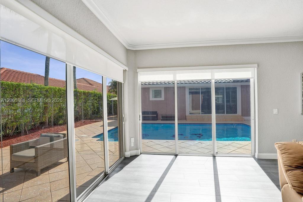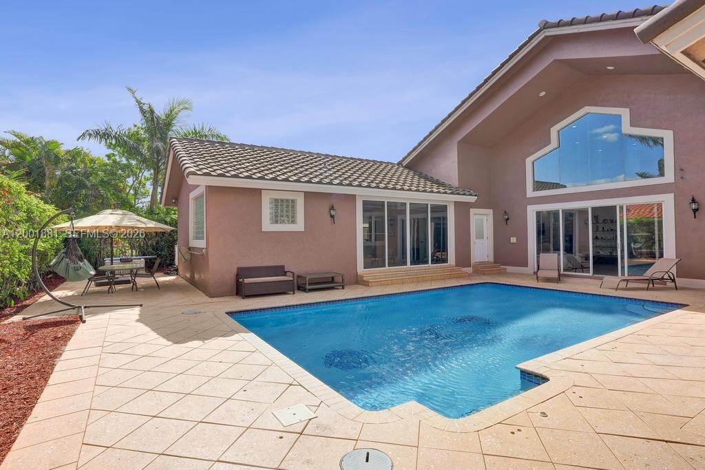 Located in The Landings, with access to all of Parkland's Grade A schools. Set on an oversized 12,367 sq. ft. corner lot, this bright 5-bed, 3.5-bath one-story home is built in a U-shape around a private pool viewed from nearly every room. As you enter the home, you are struck by tall cathedral ceilings and a dramatic peaked window that frames the pool in the great room. The updated kitchen features white cabinetry, granite counters, an oversized island, stainless appliances, and a bay window overlooking the pool, flowing seamlessly into the dining and family rooms. All bedrooms and bathrooms sit together on one side of the home. No split layout separating you from the kids. The primary suite offers vaulted ceilings, an upgraded spa-like bath with a frameless glass shower and dual granite vanities, and sliding doors that open directly to the pool deck. New 2023 roof. 3-car garage. Just one street from the home, residents enjoy the community's HOA-included amenities: tennis and basketball courts, a picnic area, and a children's playground, all for a low HOA of just $1,175/quarter (less than $400 monthly).