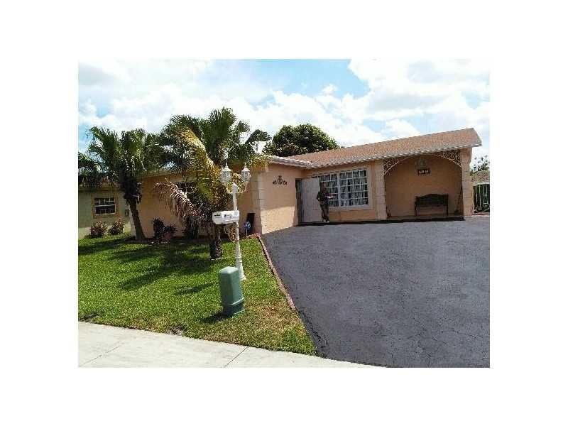 Amazing home with a beautiful open floor plan! The back room can be used as a another room or a den (has its own separate entrance and air conditioner). Tile in all rooms, separate laundry room with washer and dryer. Remodel kitchen with granite counter t ops and tile wood flooring.Enclosed garage. Hurricane approved shutters!!Alarm system.Spacious backyard with 2 mango trees. There is a park located walking distance. Safe neighborhood, great location and friendly neighbors!A must see!!