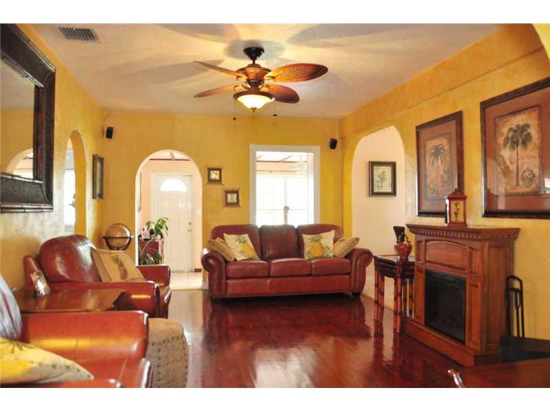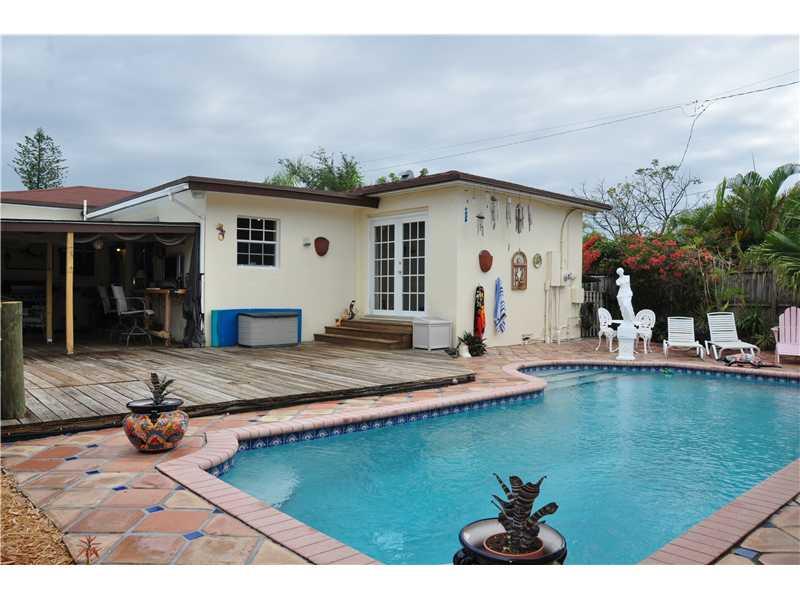 Great house. Main house has 3 bedrooms 2 1/2 baths + den + office. Hardwood floors, arches and a lots of charm. Wood fenced backyard. Updated oversized kitchen with granite counter tops with Saltillo tile, lots of counter space.Newer circle Stamped drive way.termite contract for drywood.Laundry room. Newer windows with Miami Dade approved paneling's.Large Master bedroom with walk in closet & French Doors leading to a wood deck and a pool area. Covered outside patio.Great for entertaining. plus guesthouse.