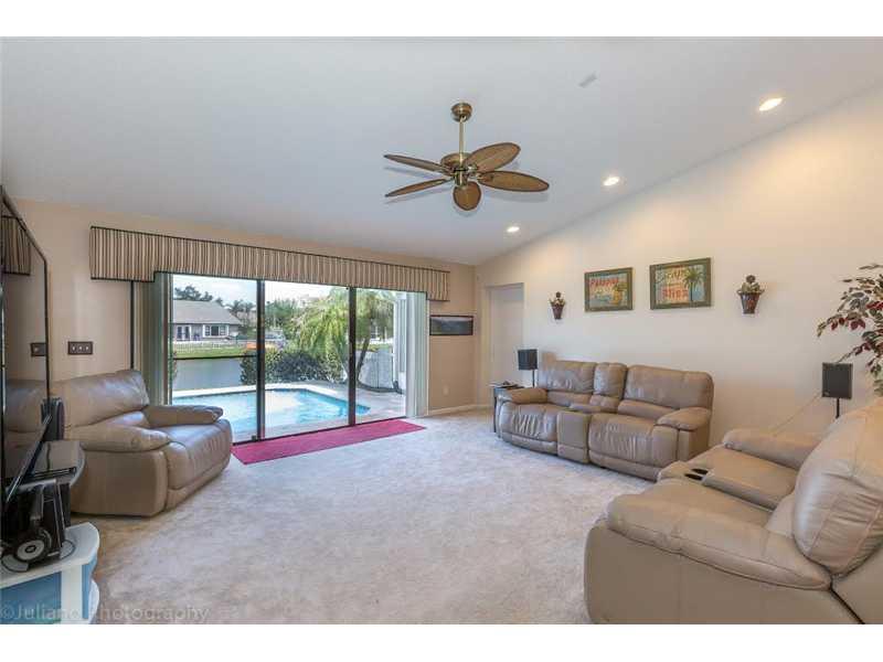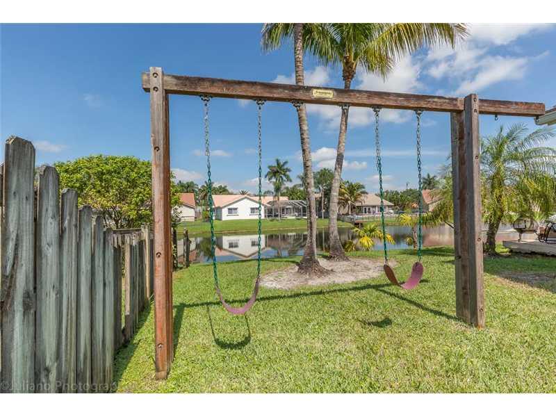 This custom 4BR+Den/2.5BA home has it all! Spectacular waterfront oversized lot on a peaceful cul-de-sac. Newer items include Tile Roof, Accordion Shutters-'06, Large eat-in kitchen with Maple kitchen cabinets, Corian countertops-'10, Large Heated diamond bright Pool and SPA with waterfall, Travertine marble patio, Hurricane rated garage door, updated 2-zone A/C-'12, Freshly painted, Recessed lighting, Enormous Master suite with huge walk-in closet, Large backyard, swing set included! Hurry won't last!