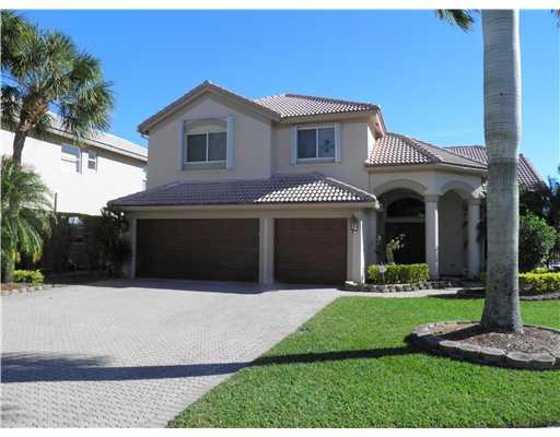 : Sturnning 2-story Mar-a-Lago hm on corner lot 4 Bdrms (Upstairs: Master + 2)/3 Bathrooms (2 upstairs) +play room(3rd garage was enclosed & turned into a Kid's playroom or Maid's quarter if needed) in enclosed guarded Boca Isl S. Water views of lake, cus tom built-in grille,POOL w/jaccuzzi, slide &waterfall. Huge open Kicken w/granite tops,preparing island& Brkfst area.Crown moldings throughout,marble floors & carpeted bedrooms.Too many upgratdes 2 mention.Formal living,dinning + family & open kitchen