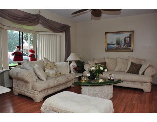 WELL KEPT FOUR BEDROOM HOME IN POPULAR SUNRISE GOLF VILLAGE - UPDATED KITCHEN WITH ADDED CABINET SPACE - LAMINATED WOOD FLOORS THRUOUT - CARPET IN BEDROOM - UPDATED SECOND BATHROOM - 10 FANS - GARAGE HAS BEEN CONVERTED TO A DEN - CAN BE CONVERTED BACK TO A GARAGE - NEWER ROOF - ACCORDION SHUTTERS AND IMPACT HURRICANE WINDOWS -SCREENED POOL WITH SERENE WATER VIEW - WALK TO SHOPPING AND SCHOOLS - NEAR HIGHWAYS
