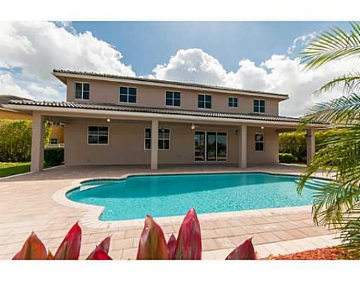 This beautiful home features new marble & wood floors, new kitchen cabinets w/ stainless-steel appliances, granite countertops. mosaic backsplash, dark-chocolate wood cabinets. All bathrooms updated w/ granite counters, water-saving toilets, new vanities. Baseboards & crown-molding. New water heater. Freshly painted. Outside features: pavers in front & backyard around pool. Pool redone w/ new motor. All new landscaping. Majestic mango & avocado trees. 2 car garage. Biggest lot around. Gated community.
