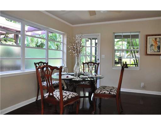 Elegant 3 bedroom 2 bath East of US 1, wood floors, updated open kitchen with pass-through to dining area, crown molding, stainless steel appliances with warming door, wall oven and microwave, granite countertops and backsplash. Recessed lighting. Large master bedroom currently used as a family room. 2 patios with view, very boutique-style pool, updated bathrooms, 2nd bath has subway tile with glass inserts. Beautiful landscaping with tropical-like feel. Roof only 1 year old.