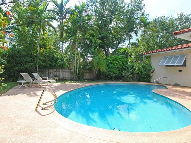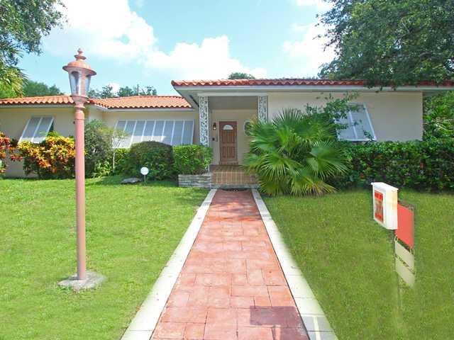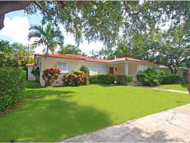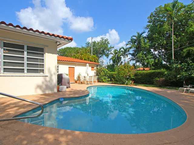 QUIET CORNER LOT ON A TREE LINED STREET IN MIAMI SHORES. FENCED YARD WITH POOL AND BIG PATIO; ATTACHED OVER SIZED 2 CAR GARAGE WITH GARDENER'S BATH. EAT IN KITCHEN, HUGE LIVING ROOM & BIG FAMILY ROOM OVERLOOKING THE POOL. 3 BEDROOMS, 2 FULL ORIGINAL 195 0'S BATHS IN GREAT CONDITION. GOOD CLOSET AND STORAGE SPACE, OPEN FLOOR PLAN, GOOD BEDROOM SPLIT. HARDWOOD AND TILE FLOORS. SPRINKLER SYSTEM, ALARM SYSTEM AND ONE ZONE CENTRAL A/C.