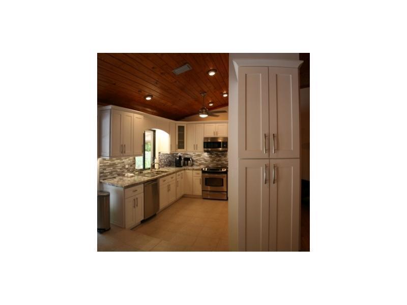 Fantastic acre pool home newly updated w/beautiful, bright kitchen boasting tasteful granite, pretty glass tile, ample cabinetry. Warm red oak flooring & vaulted ceilings welcome you with serene views of the sparkling pool and tropical backdrop. Split flo or plan offers large bedrooms, updated baths & huge closets w/organizers. Incredible upgrades - stone pool deck, pavered drive, newer stone coated steel roof, impact windows & generator. Ask for features list & video.