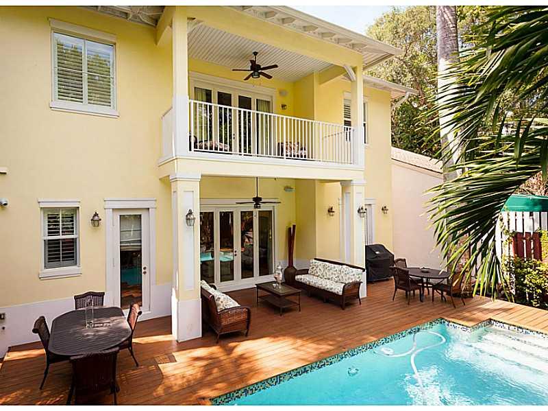 Hinting of beach cottage and plantation style, this 4 bed, 4.5 bath 3,866 SF Coconut Grove home exudes casual sophistication. Breezy balconies, tall windows and wood shutters that filter in the Miami light complement its soothing décor. Has timeless appea l and lavish details: dual driveway with 2 car garages, stainless steel appliances, heated pool, security system, Brazilian wood floors on 2nd floor rooms, large his and her walk-in closets, master bedroom w/ balcony over pool and ensuite master bathroom.