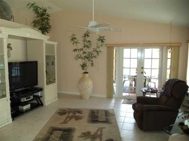 FABULOUS PERFECT CONDITION WATERFRONT GEM! FOYER ENTRY LEADS TO VAULTED CEILINGS & OPEN LIVING & DINING AREA! KITCHEN & SNACK BAR OPENS TO LIVING AREA! GREAT MASTER SUITE! LARGE WALK-IN CLOSET! FRENCH DOORS OPEN TO 30 HIGH, DOMED SCREENED PATIO! ACC ORDION STORM SHUTTERS & 5 CEILING FANS ADD TO THE VALUE! NEW CENTRAL A/C & NEW GARAGE OPENER! SUPER CLEAN! WELL MAINTAINED! SHOW & SELL THIS WINNER!