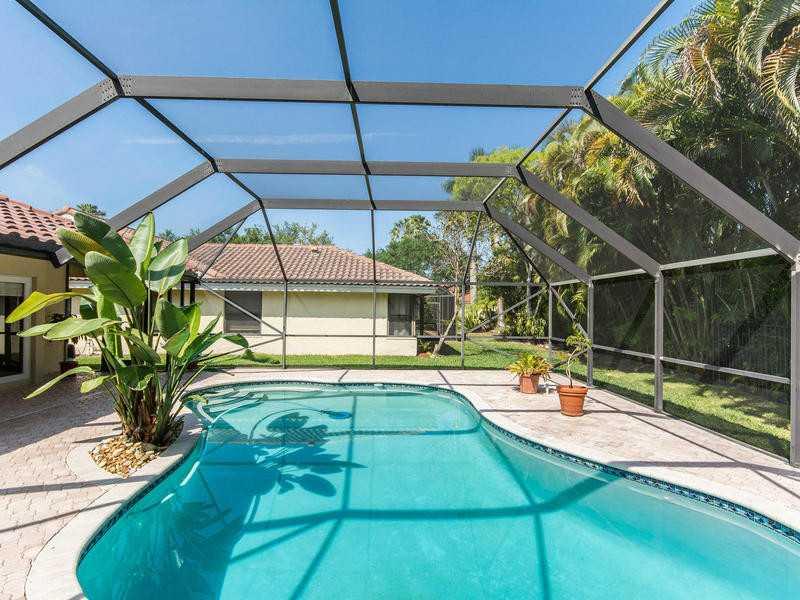 Welcome to your new home, meticulously maintained and upgraded over the years with Travertine marble floors,Custom built wall unit in family room, white wood blinds, French doors, Fluted casings with rosettes, Upgraded kitchen with stainless steel applian ces and granite counter tops in 2010 Custom tile in bathrooms with frameless shower doors. Barrel tile roof replaced in 2008 Free form pool with screened enclosure and brick pavers New hurricane rated garage door replaced in 2014. A WINNER.